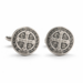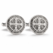 These St. Benedict Medal cufflinks feature the historic Catholic cross design, long recognized as a symbol of protection and spiritual strength. Finished in antique silver, they offer timeless style with meaningful depth.