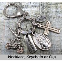 Materials: Italian Pewter: Saint Medal (1" tall) and Your Choice Charm. Silver Plate: Purse-Backpack Clip and Keychain (zinc metal alloy, lead and nickel free) Stainless Steel: Link Chain Necklace, Ball Chain Necklace, Clasps and Rings. Thoughtfully packaged and "Handmade with Love". Thank You For Stopping by Elation by Steffany.