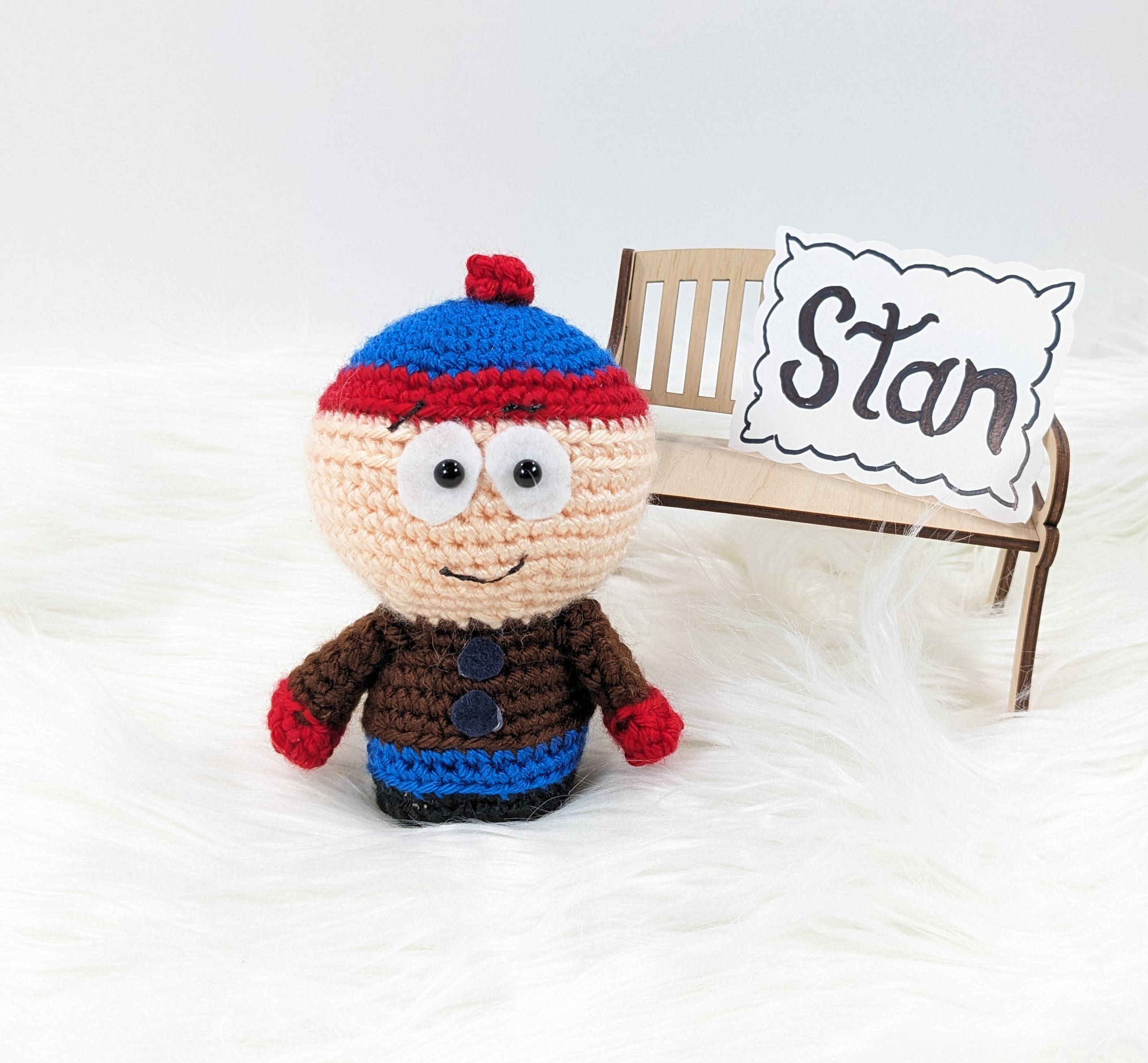 Stan Plush Mini Character-Series. This is a crochet interpretation of a character. You will love this cute little guy for yourself or to give as a gift. Also he measures 4 1/2 inches tall. You can find a selection of other dolls and characters in my shop. Also I will be offering Stam with 2 other characters from this series at a discount price. You can message me for any questions you may have or to request a set of 3 for a discount.