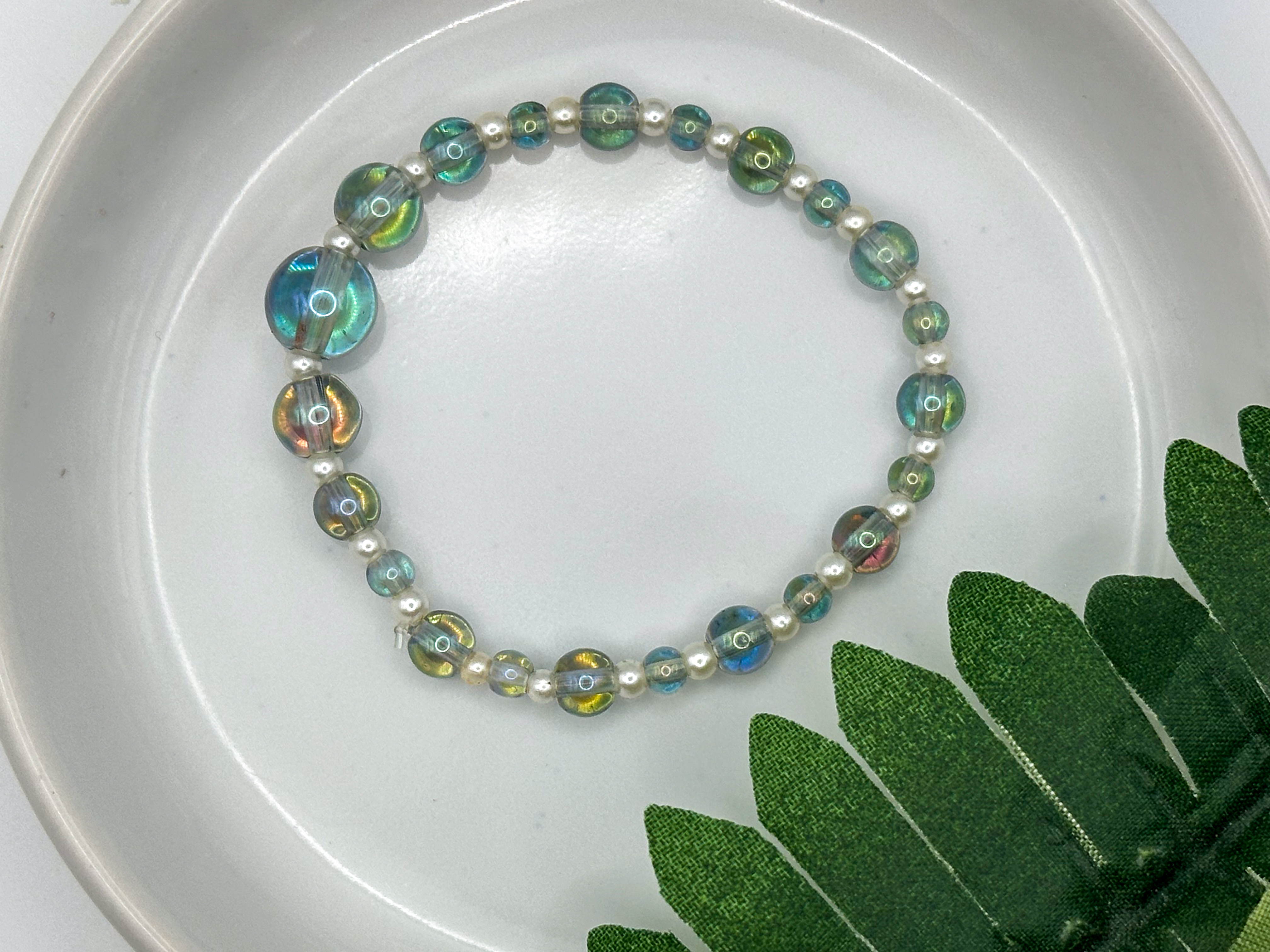 Starlight Drift Bracelet – Opalescent Glass with Soft Pearl Accents
