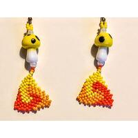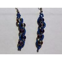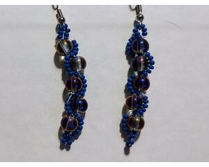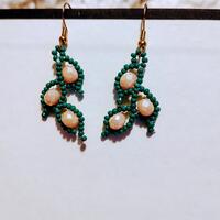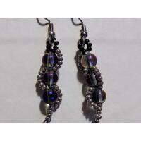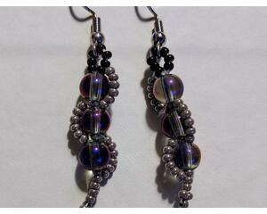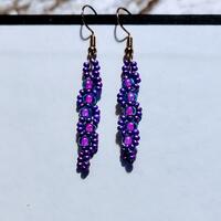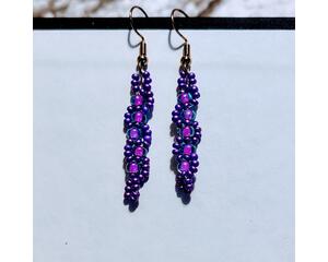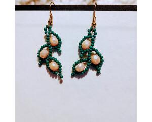 These earrings are made with seed beads and plastic beads. The thread is nylon thread and the earring findings are hypoallergenic metal.