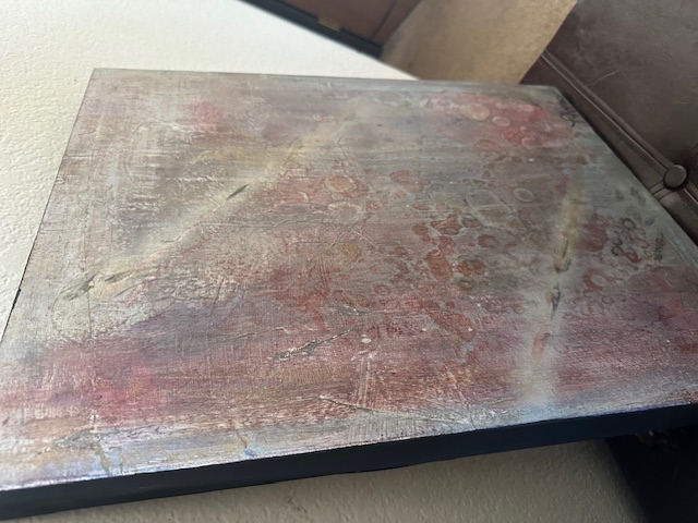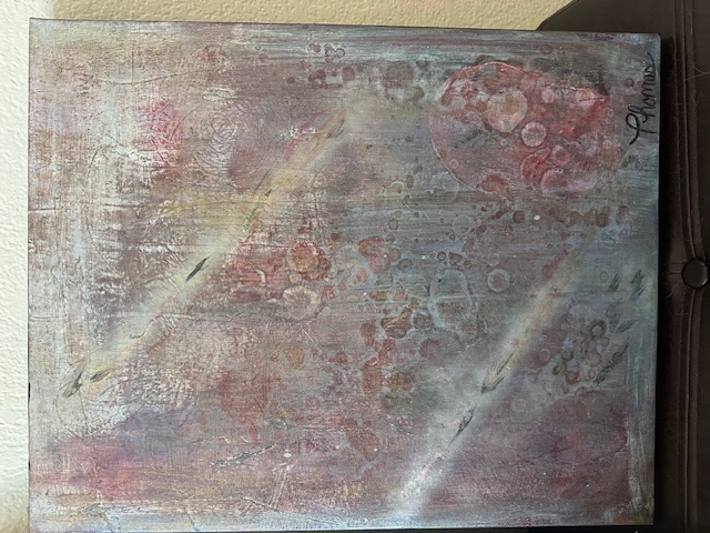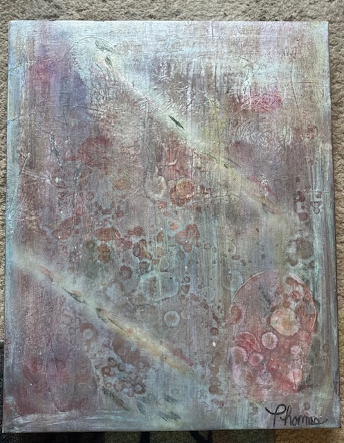 This acrylic painting on heavy canvas is multi layered. Texture is created using crackle paint, glue, and layers of paint and isopropyl alcohol drops. Finished off with multi layers of color swashes of acrylic and some spray paint for fun. This is all blended together to create a piece that will function well in any surrounding.