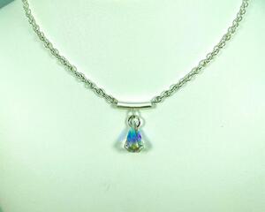 Sterling Silver Crystal AB Raindrop Pendant in Red color, mounted on a Sterling Silver tube bead. Pendant is 14mm. Sterling Silver tube bead is 5mm. Sterling Silver curb chain is 16 inches in length with a lobster claw clasp.