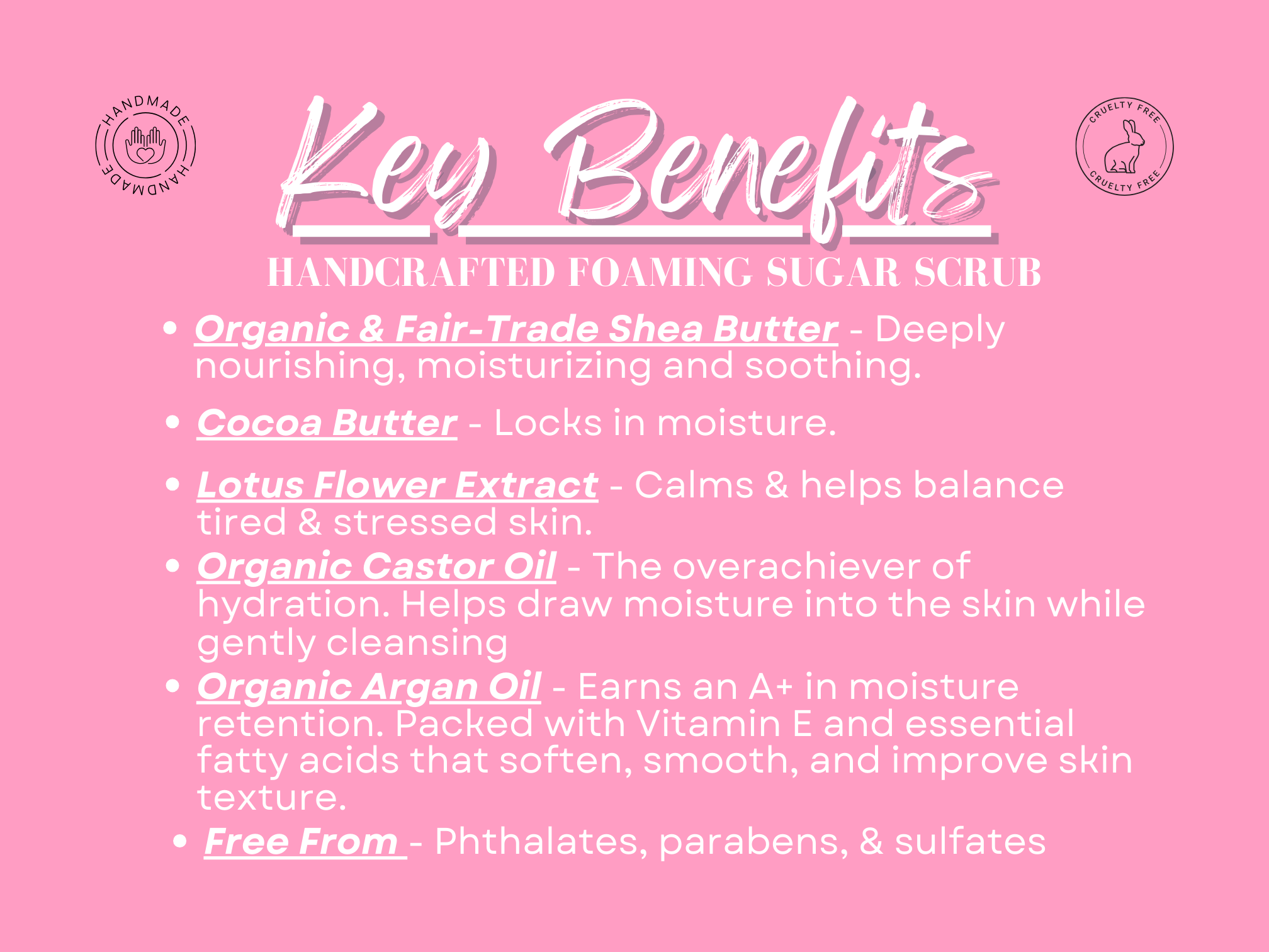 My handcrafted bath and body creations are made with high-quality ingredients you recognize—formulated to nourish your skin while adding a touch of fun to your daily routine. Whether it’s a whipped soap that lathers like silk, a luxurious sugar scrub that leaves your skin radiant, or a rich body cream that envelopes you in softness, my goal is to transform your self-care moments into something truly indulgent.