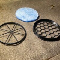 This is an STL file only. Printing it yourself and cutting your own filter material is your responsibility. I recommend using 1/2" thick MERV 8 filter material that can be found on Amazon, or purchasing a complete one from me through the other options on this site. Print this file at full scale (approx. 125mm diameter for housing and 119.5 mm for lid). With supports. Print can be in PETG, ABS, ASA, Nylon, or any other high-temp filament. Do NOT use PLA. The lid twist locks into the housing. Depending on your printers ability to bridge, some light trimming may be required of the lock tabs/slots to snap into place.