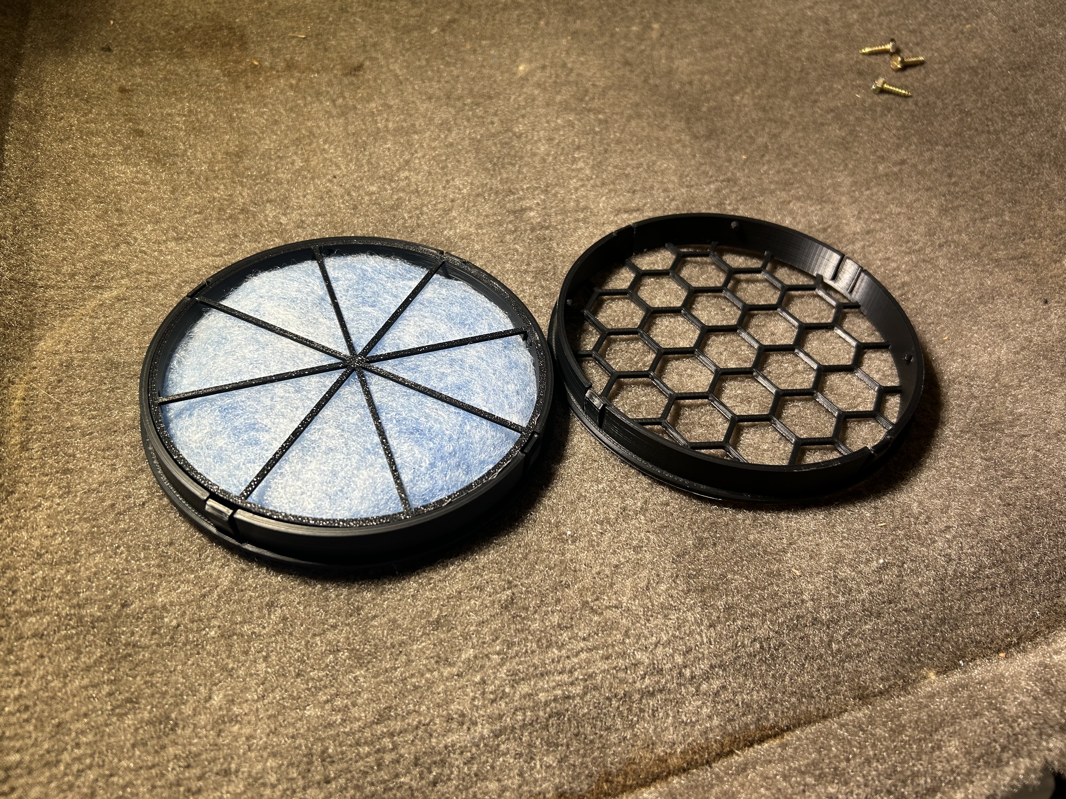 This is an STL file only. Printing it yourself and cutting your own filter material is your responsibility. I recommend using 1/2" thick MERV 8 filter material that can be found on Amazon, or purchasing a complete one from me through the other options on this site. Print this file at full scale (approx. 135mm diameter for housing and 124.5 mm for lid). With supports. Print can be in PETG, ABS, ASA, Nylon, or any other high-temp filament. Do NOT use PLA. The lid twist locks into the housing. Depending on your printers ability to bridge, some light trimming may be required of the lock tabs/slots to snap into place.
