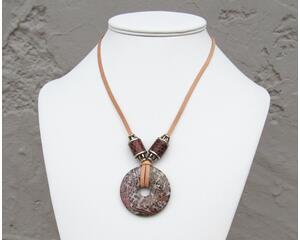 Stretchy stone bracelet with amazonite, artistic stone and lava beads, browns, black and aqua colors