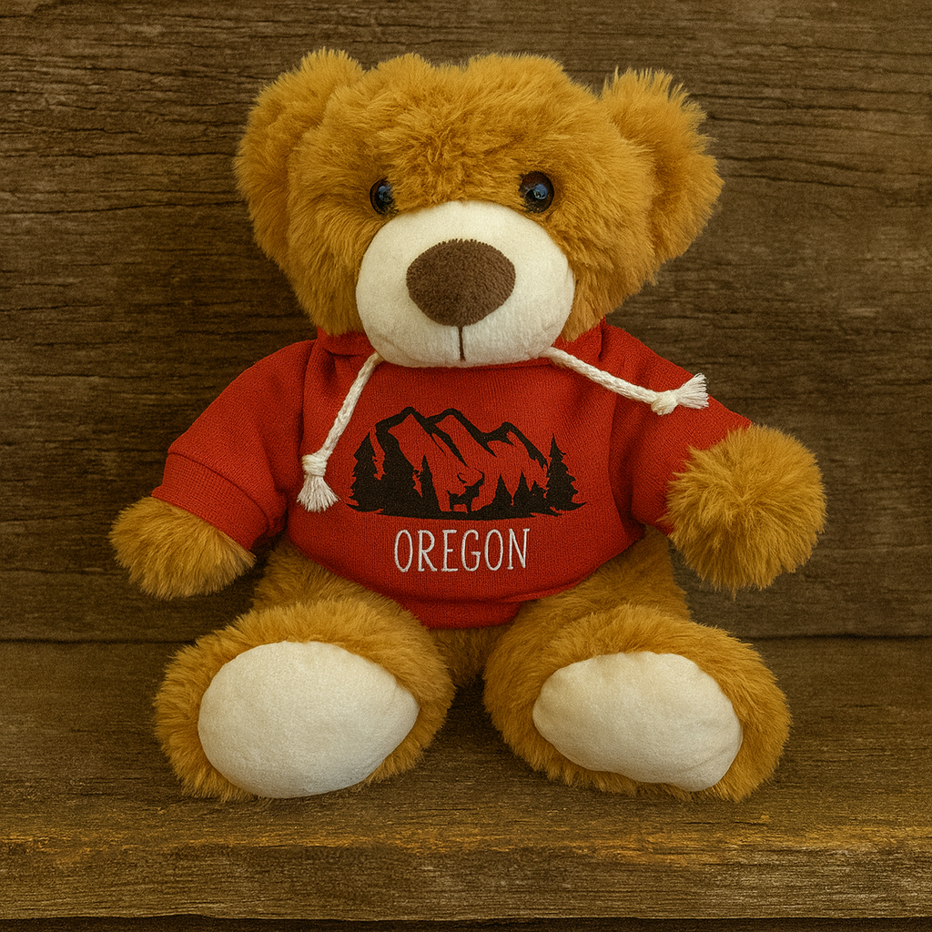 This adorable 15-inch plush teddy bear is soft, squishy, and ready for adventure, whether that’s on your couch, a camping trip, or your next visit to the Oregon coast!