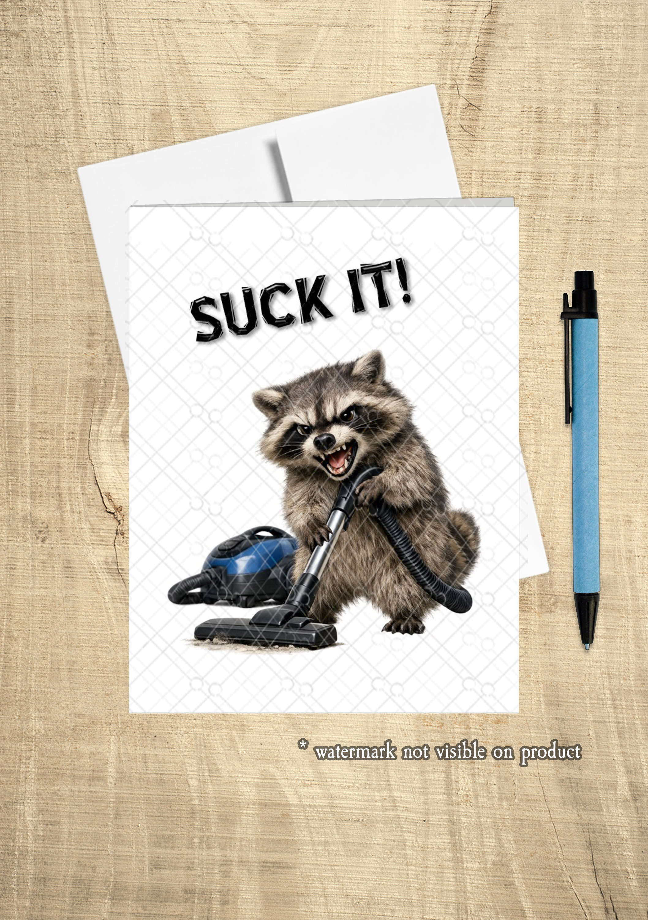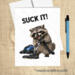 “Suck It!” Raccoon Vacuum Card | Sarcastic Humor Card | Petty Encouragement Card | Snarky Card