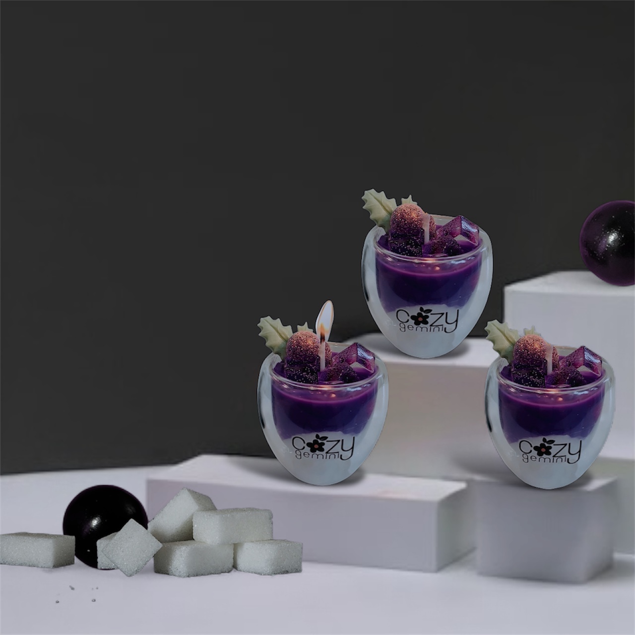Beautiful swirls of deep purple wax evoke the richness of sugar plums, while the top is adorned with glistening gel wax “plums” and glossy, realistic gel wax ice cubes. Sugar Plum Latte is as delightful to behold as it is to burn.