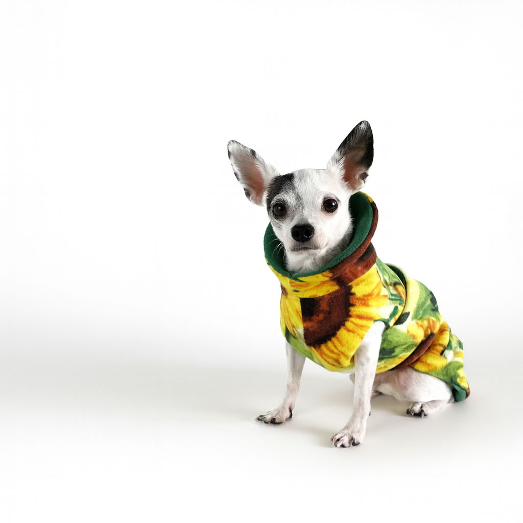 Nothing says Autumn quite like sunflowers in full bloom. The Sunflower Burrito Wrap Dog Coat captures that golden warmth, turning your dog into a walking celebration of Fall. Crafted from soft, premium fleece, this coat is designed for both comfort and function.