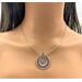 I created this necklace with a wonderfully detailed sunflower mold, copper clay, sterling silver sheet, and sterling silver beaded wire. After firing the copper clay sunflower, I soldered it on sterling silver sheet framing with the beaded wire. I cut the final shape with a jeweler's saw. Then polished and added a copper riveted bail.
