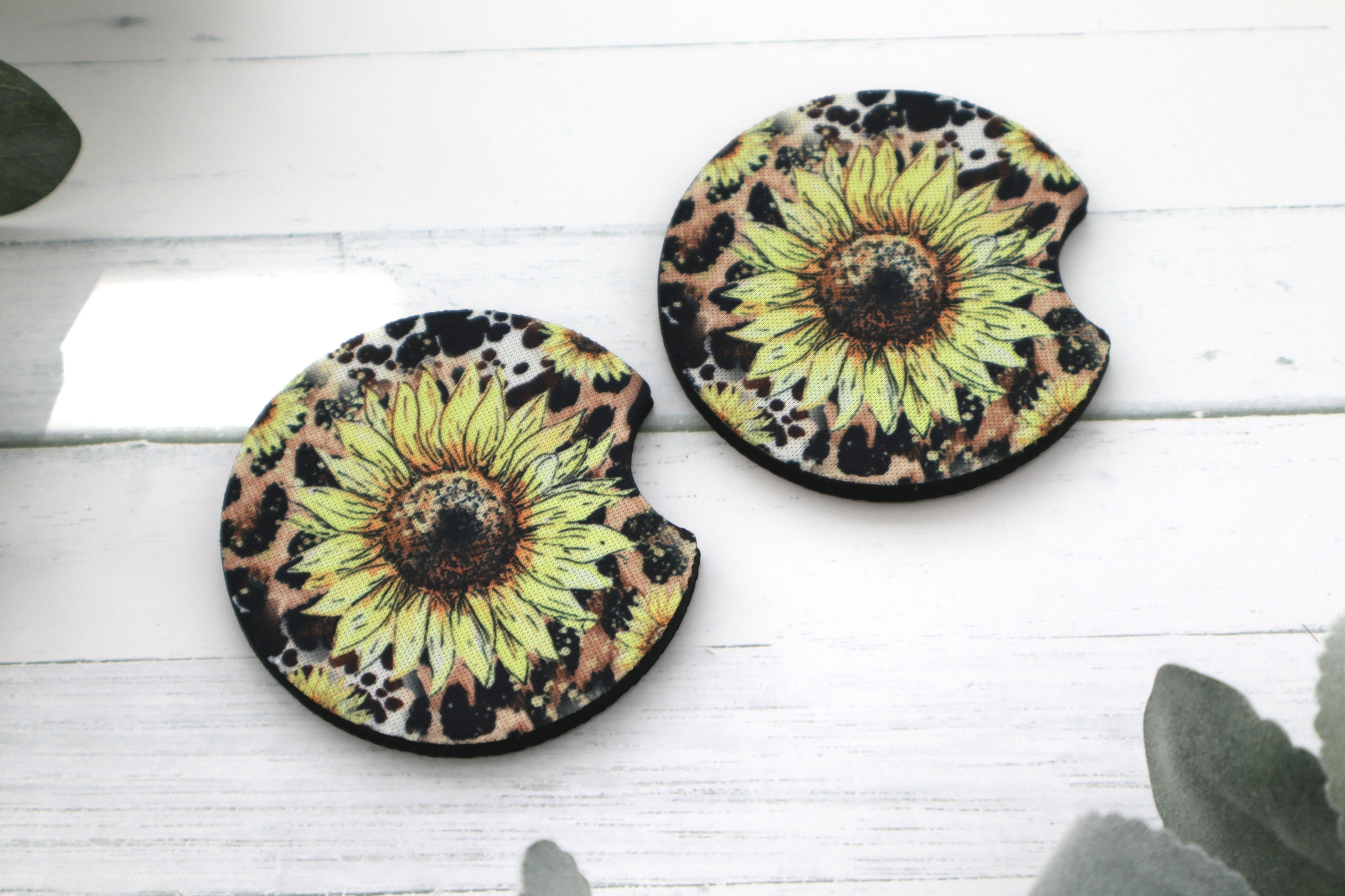 Sunflower neoprene car coasters