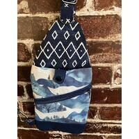 The Traveler Shoulder Bag is costumed made for your safety with two zipper pockets and one with a snap closure. 12 inches tall and 6 inches wide with an adjustable shoulder strap.