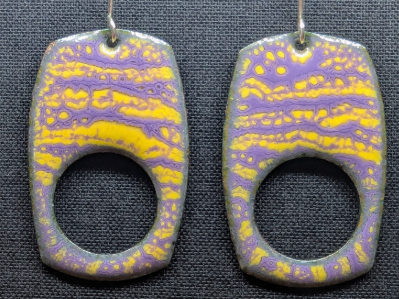 Wear a piece of sunset magic with these captivating sgraffito enamel earrings that blend golden warmth with dreamy lavender! The ancient sgrafitto technique creates flowing striped patterns that seem to ripple like water or dance like flames.