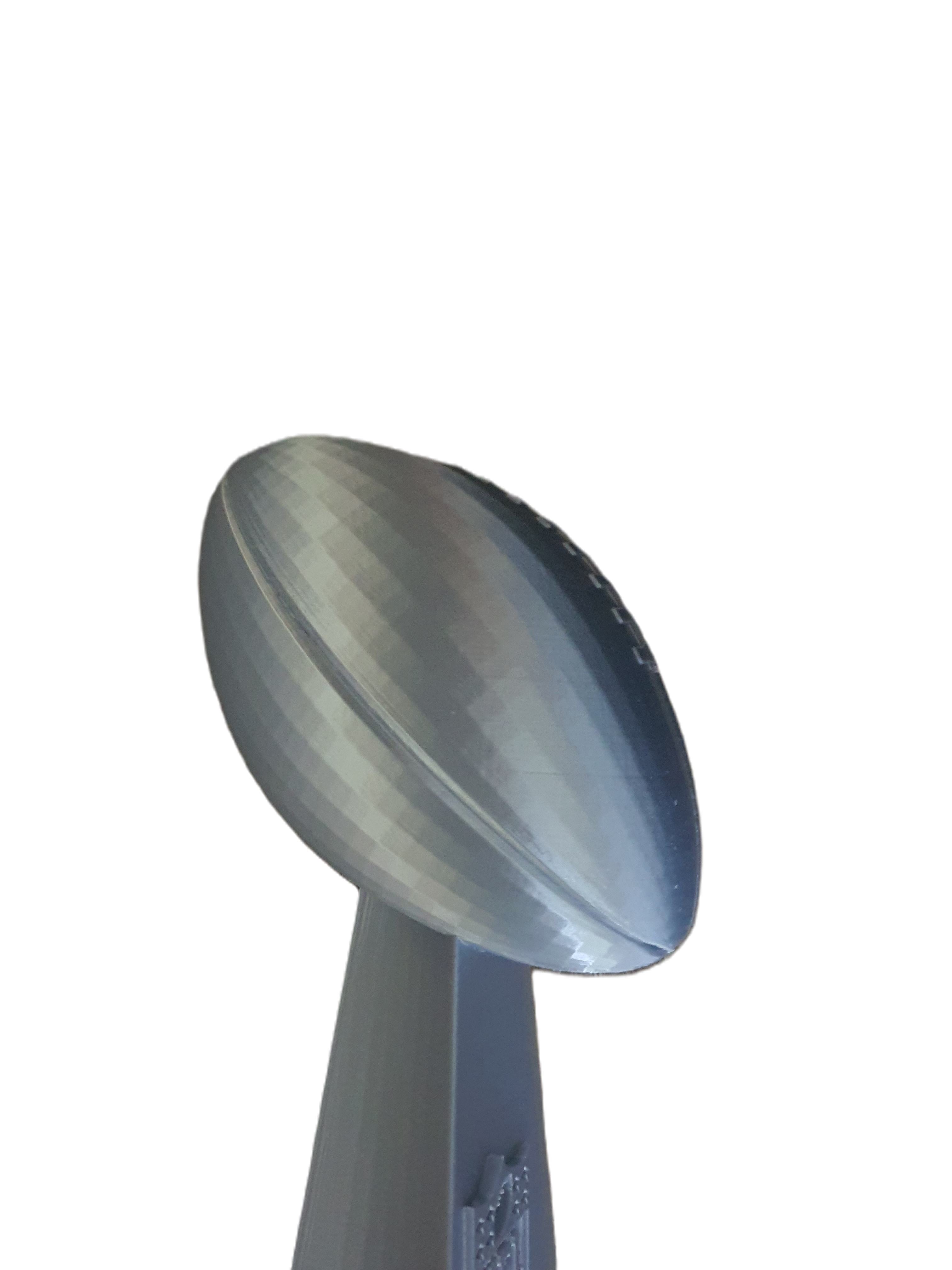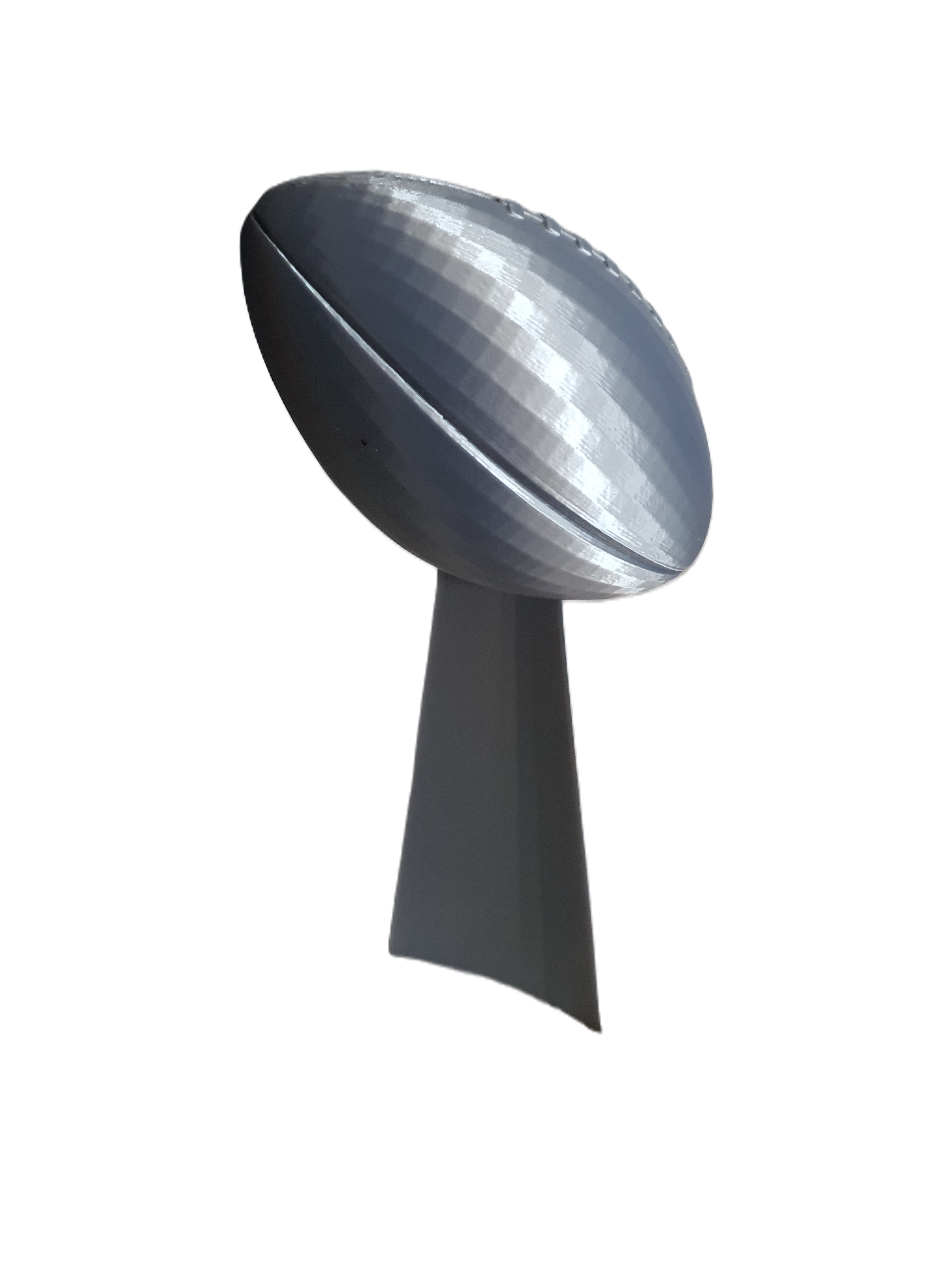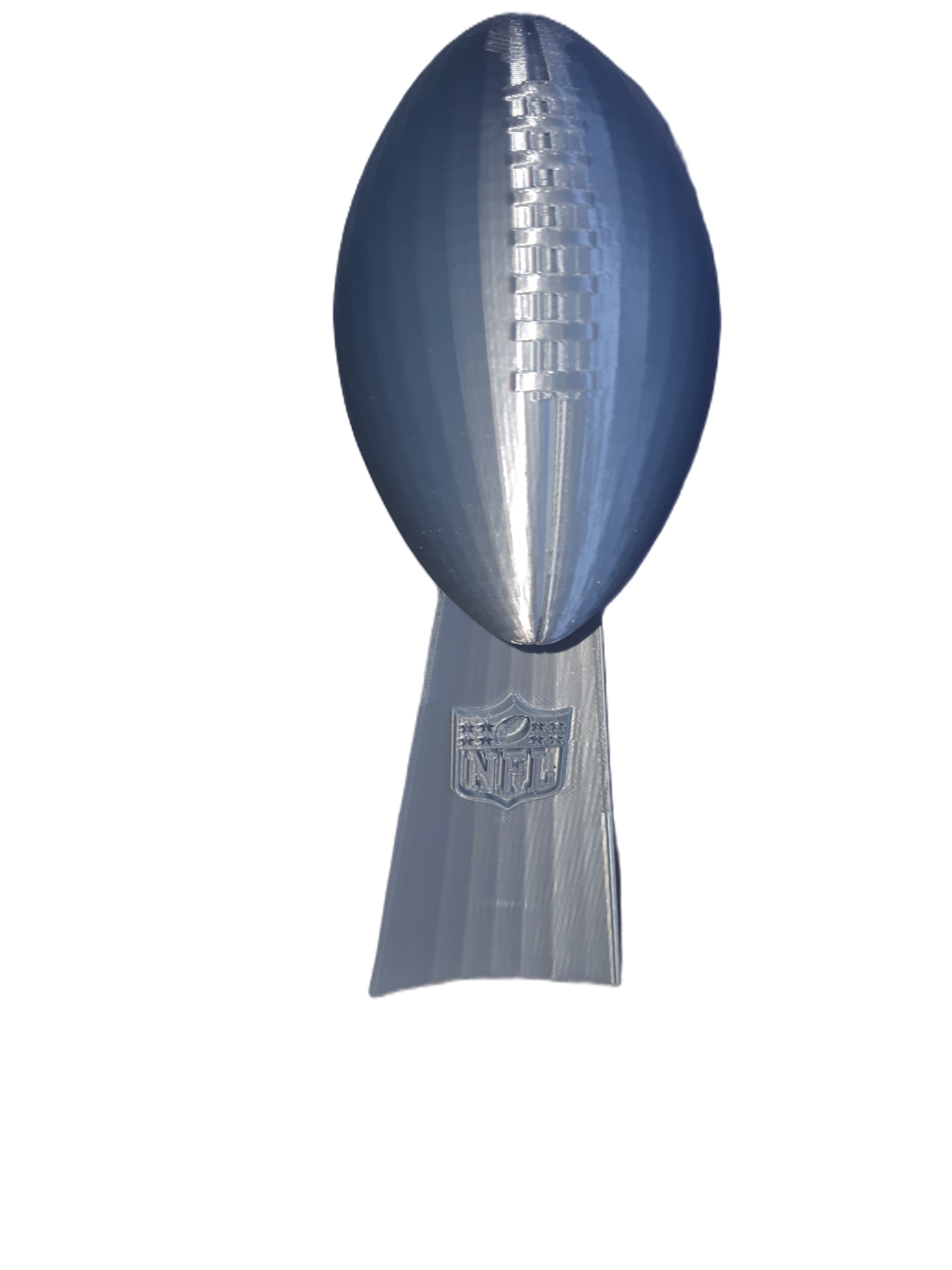Description: Super Bowl Football Trophy has a sleek, shiny finish. This eye-catching piece is perfect for fantasy leagues, game-room décor, or rewarding the champion of your season. Standing a full 12 inches tall, it captures the look and presence of the iconic Super Bowl trophy while keeping things lightweight and durable with high-quality 3D-printed construction.