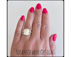 Monogram oval saddle ring, sterling silver jewelry, hammered ...