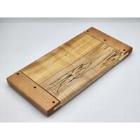 Introducing our Unique Zebra wood & Curly Maple Sushi/Serving Board, expertly crafted from premium quality wood. This stunning board is perfect for serving sushi or any other appetizers at your next dinner party. The handcrafted board features an elegant and distinctive design that is sure to impress your guests. The board is also versatile, making it an ideal choice for serving cheese, charcuterie, or even desserts. Upgrade your serving game with our beautiful Zebra wood & Curly Maple sushi/serving board. This sushi board is one of a kind. Free set of hand made Maple chopsticks with the purchase of this sushi board!