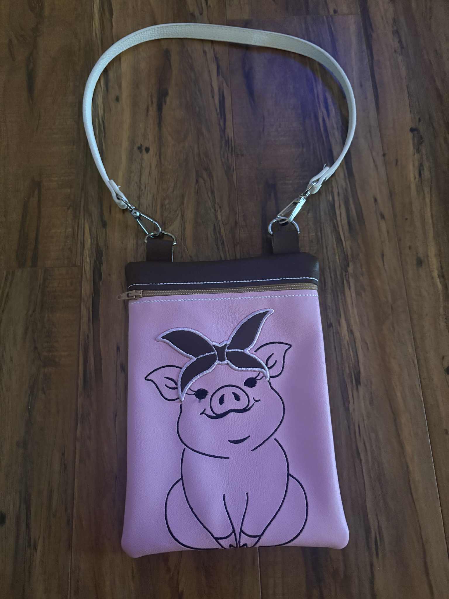 Meet this adorable handmade crossbody bag featuring a little piggie with a colorful bandana — stitched with love and just the right amount of charm.