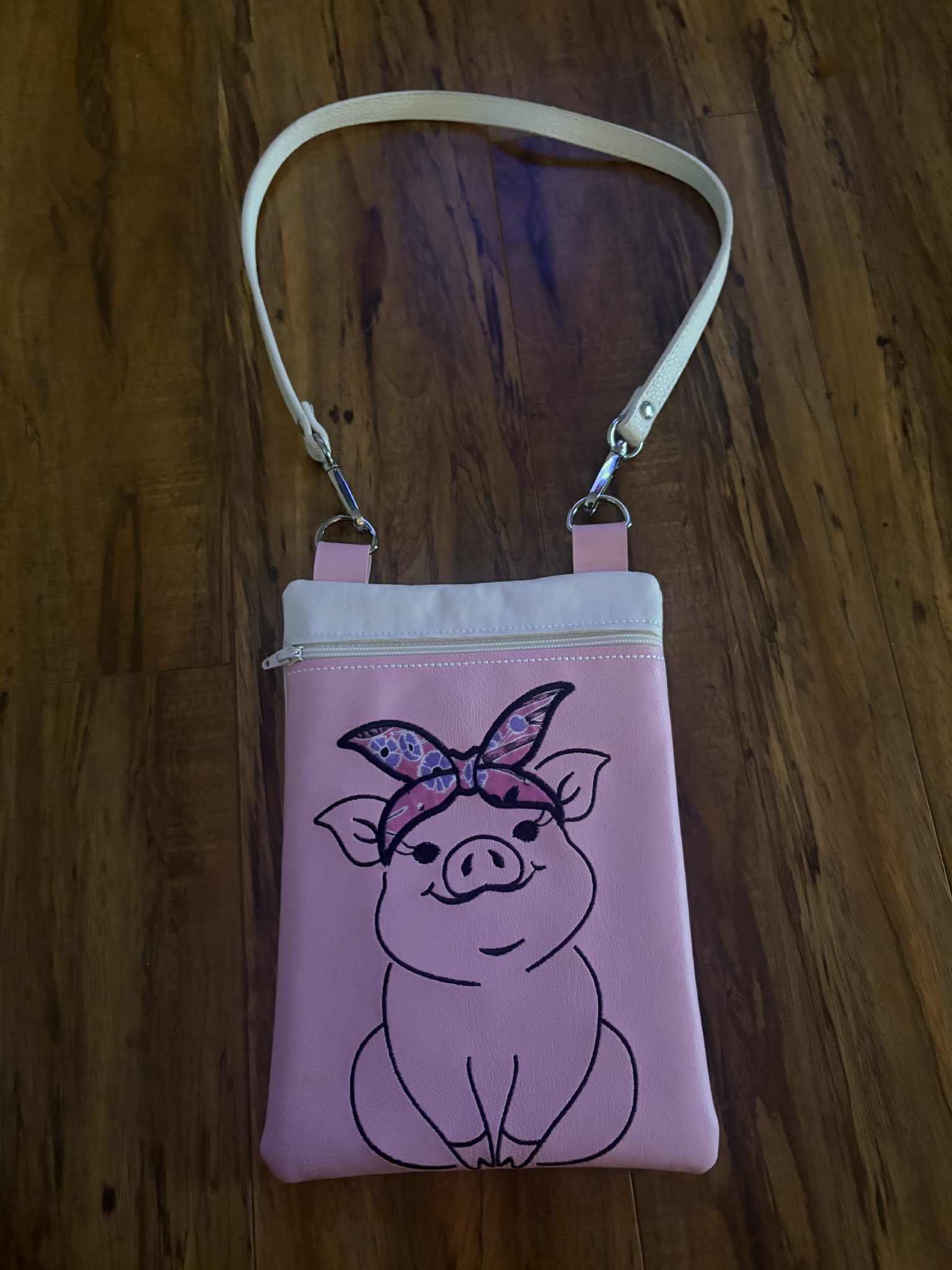 Meet this adorable handmade crossbody bag featuring a little piggie with a colorful bandana.