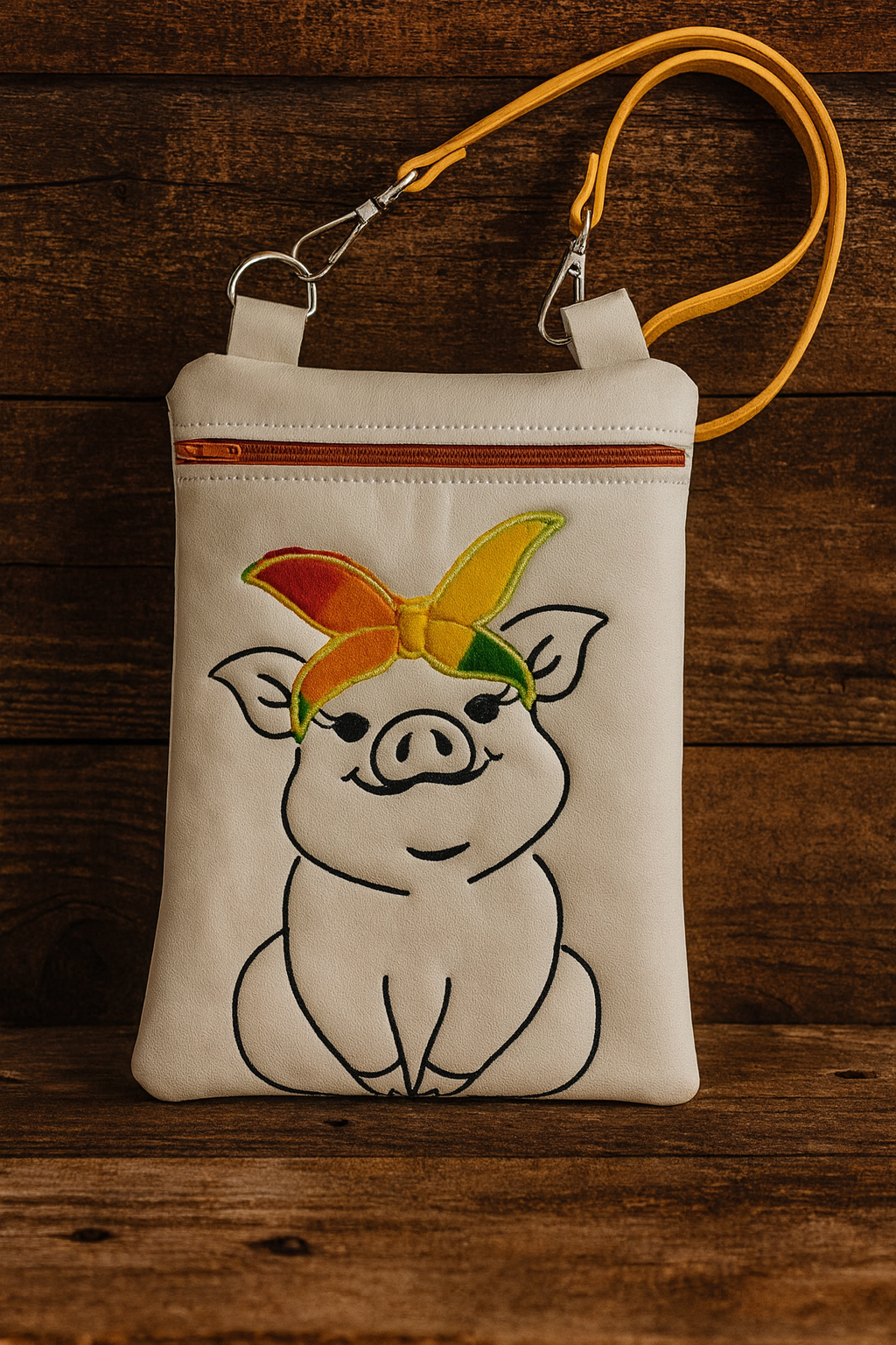 Meet this adorable handmade crossbody bag featuring a little piggie with a colorful bandana — stitched with love and just the right amount of charm.