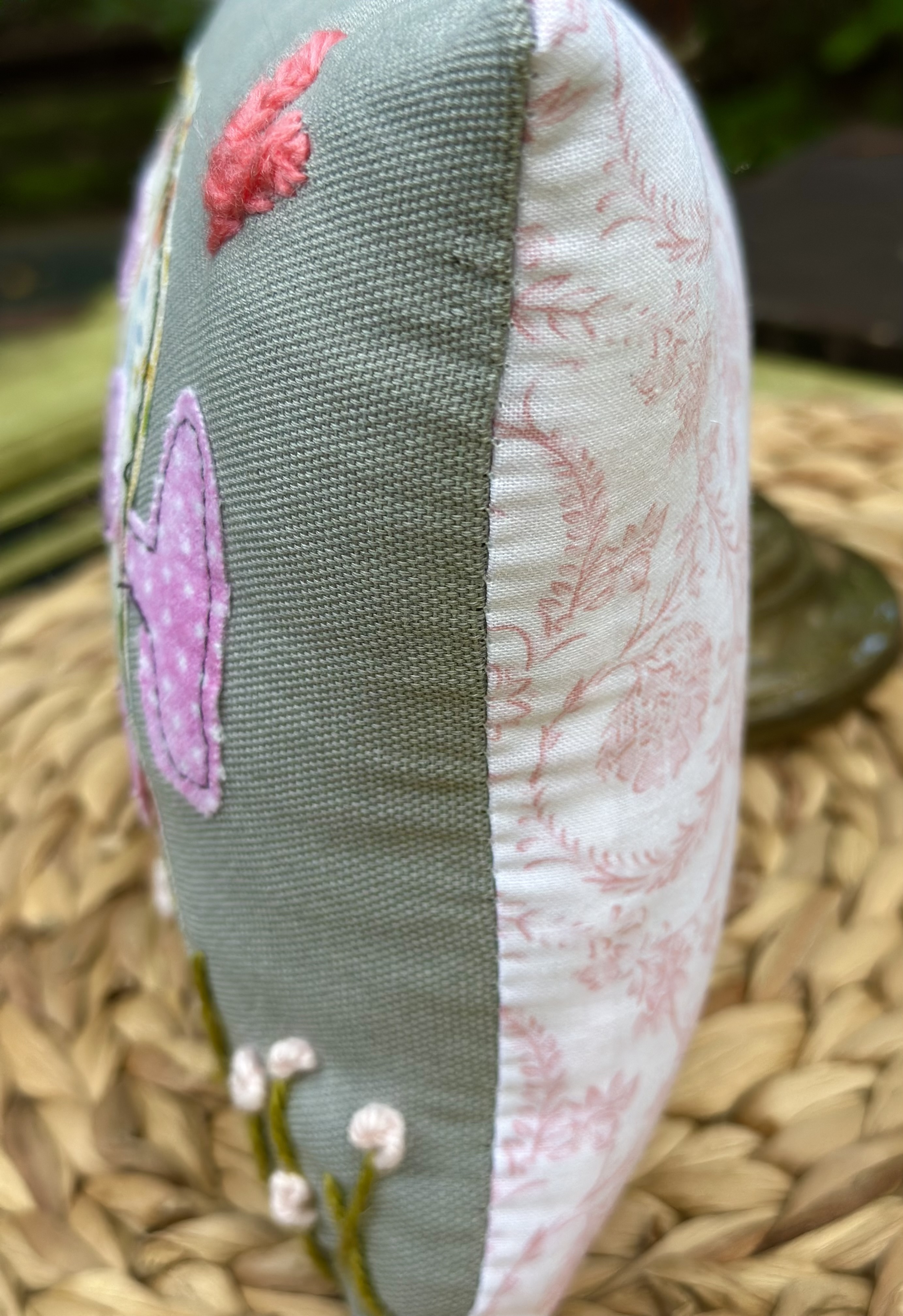Floral machine is made of mixed fabrics and Freemotion stitching.