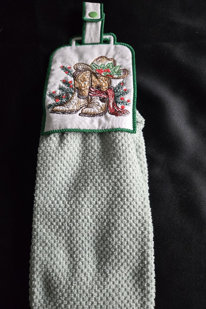 Swirly Kitchen Towel-Christmas Cowboy Hat and Boots