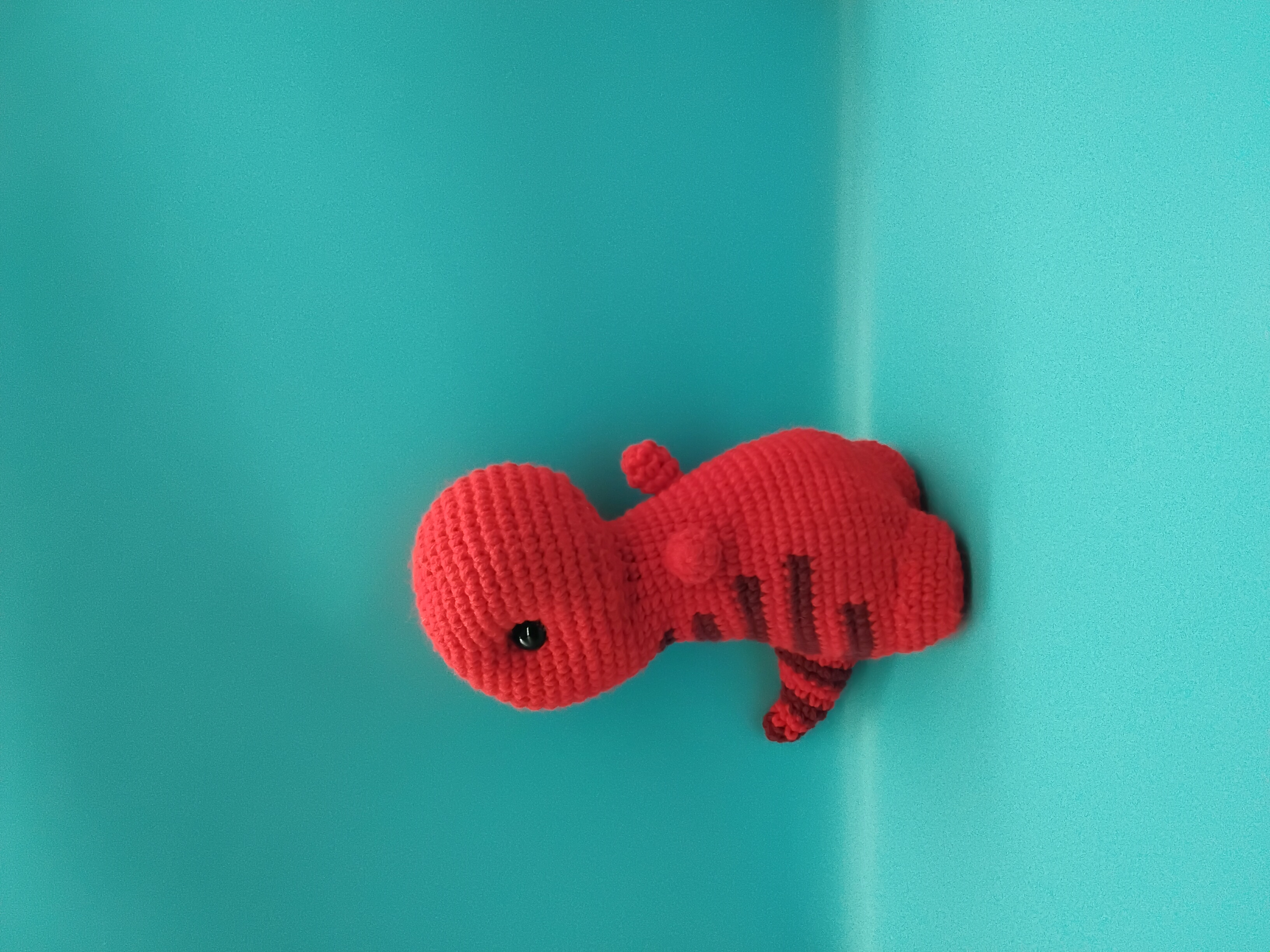 This handmade crochet T-Rex is a playful twist on prehistoric charm. Featuring bold stripes, tiny arms, and a swishy tail, each plush is crafted with soft acrylic yarn and filled with polyfil for a squeezable, huggable feel. The tight stitching and expressive safety eyes bring this dino to life, making it a fun companion for playtime, decor, or gifting.
