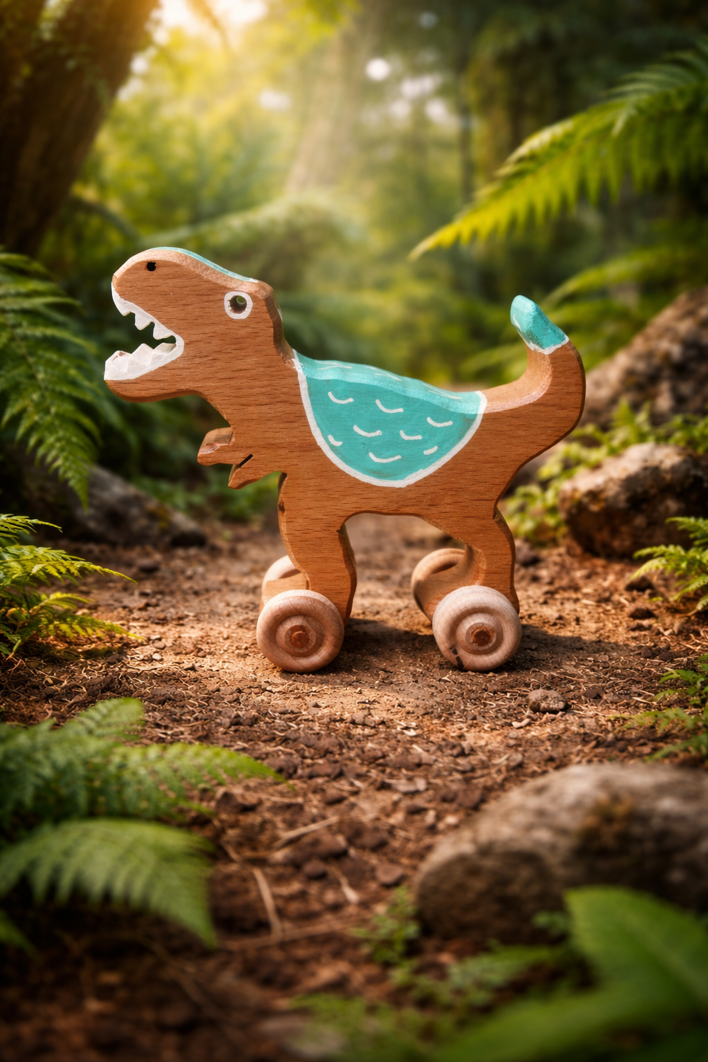 charming wooden, dino handcrafted with a rustic touch. .