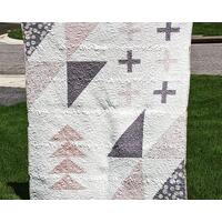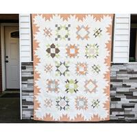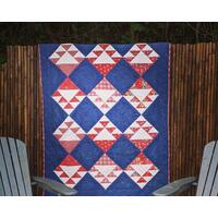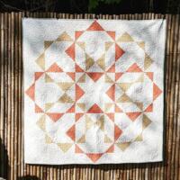 For the quilting design I went with a star encircled by feathers for the large blocks, a smaller four-point swirl in the smaller blocks and then large and small stars all around the border. The double-fold binding around the edges ensures that the quilt will stand the test of time. Cuddle up with a good book or with those you love under its 55" x 65". Batting is 100% cotton.