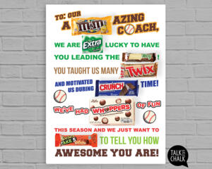 Baseball Coach Candy Gram PRINTABLE, 18x24 Poster Size | Base...