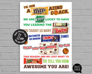 Basketball Coach Candy Gram PRINTABLE, 18x24 Poster Size | Ba...