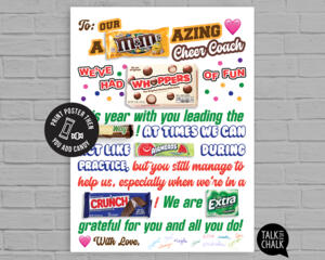 Cheer Coach Candy Gram PRINTABLE, 18x24 Poster Size | Cheer C...