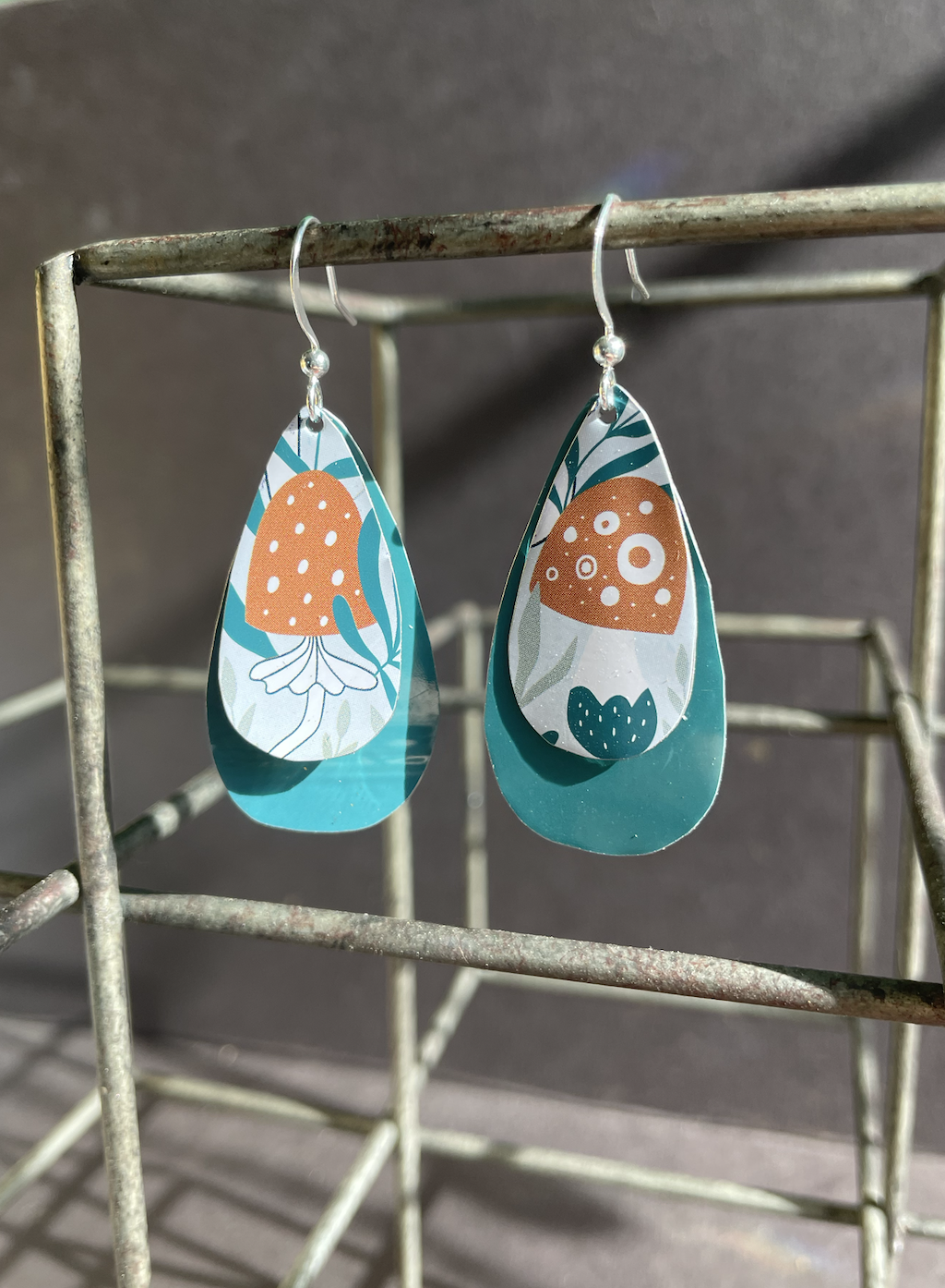 Mushies! These earrings have silver-plated earring findings and a rubber stopper on the back so they won't fall out of your ears.