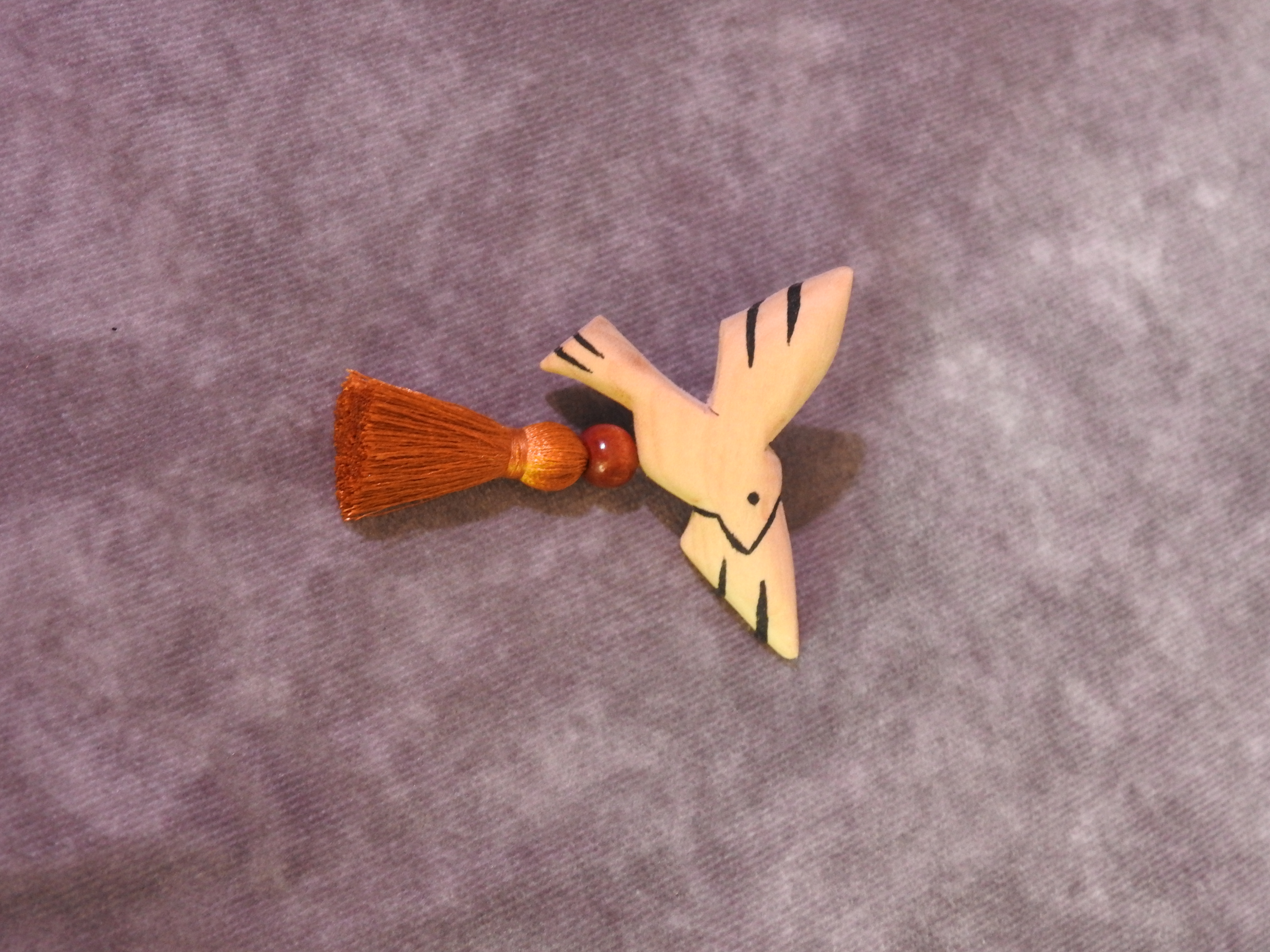 Based on the bird pin seen on Rapunzel's satchel from the series: Rapunzel's Tangled Adventure. These pins are hand carved from poplar wood and each assembled with a gold tassel.