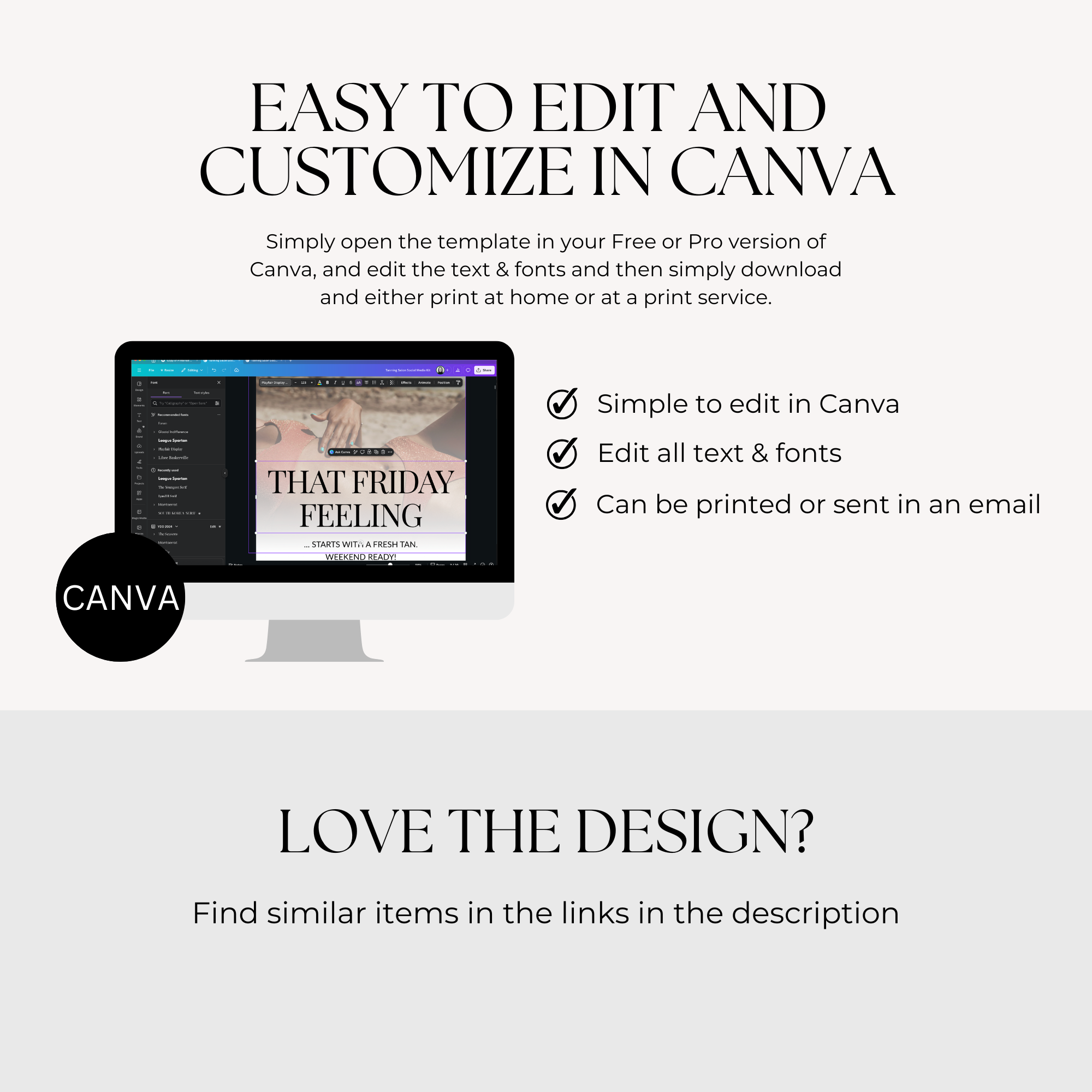 Create consistent, scroll-stopping content - without spending hours designing. This Tanning Salon Social Media Kit includes 30 done-for-you Canva templates you can edit in minutes and post to Instagram or Facebook.