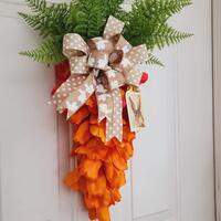 Wreaths can be hung on a door or wall. Wreaths come with a jute twin hanger on the back. When placing on an outside door make sure they are secure for wind could blow them off.