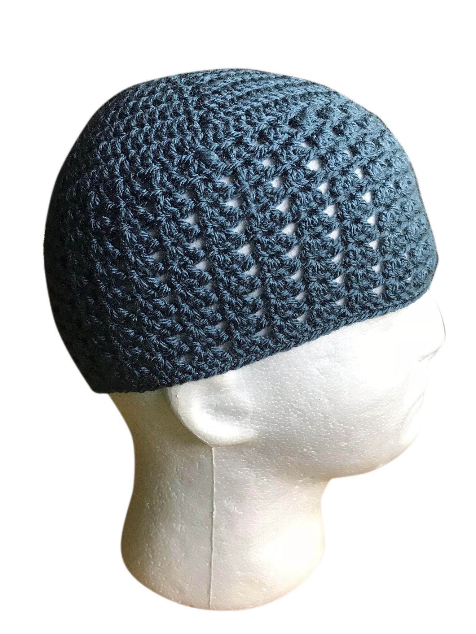 Taqiyah, Kufi Hat, Knit Kufi, Skull cap, Crochet Khufi, Crochet Beanie, Men & Boy's Kufi, Men's Beanie, Knitted Kufi, Kufi for children, Kufi for men, Crochet Hat, Adult Hat You are purchasing an Original Design by me, Kim Mack. It is designed to fit your head with no gaps. The soft yarn allows for no irritations. Because of the way it is made it will stretch through several sizes. The Kufi is made with a thinner yarn than the Beanie so if you order this one it will be thin. All my hats are made to fit Teens to Adults unless otherwise specified. Custom made hats can be made at your request. Don't see your color, just ask. *