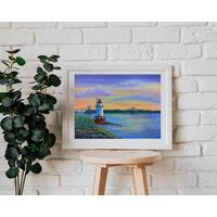 This beautiful painting by this Hudson River artist and art instructor Irene Czys, captures both the charm of the lighthouse and the nostalgia of the historic Tappan Zee Bridge. Also known as the Tarrytown Lighthouse (Sleepy Hollow Lighthouse or Kingsland Point Light), Hudson RIver, Sleepy Hollow, New York. Available for in person viewing and purchase at the Arts Alive Art Gallery in Nyack, NY. Ideal for purchase by local Hudson River art collector, historian or local business, hospital or corporation. Email us to arrange to see it in person in our Nyack Art Gallery.