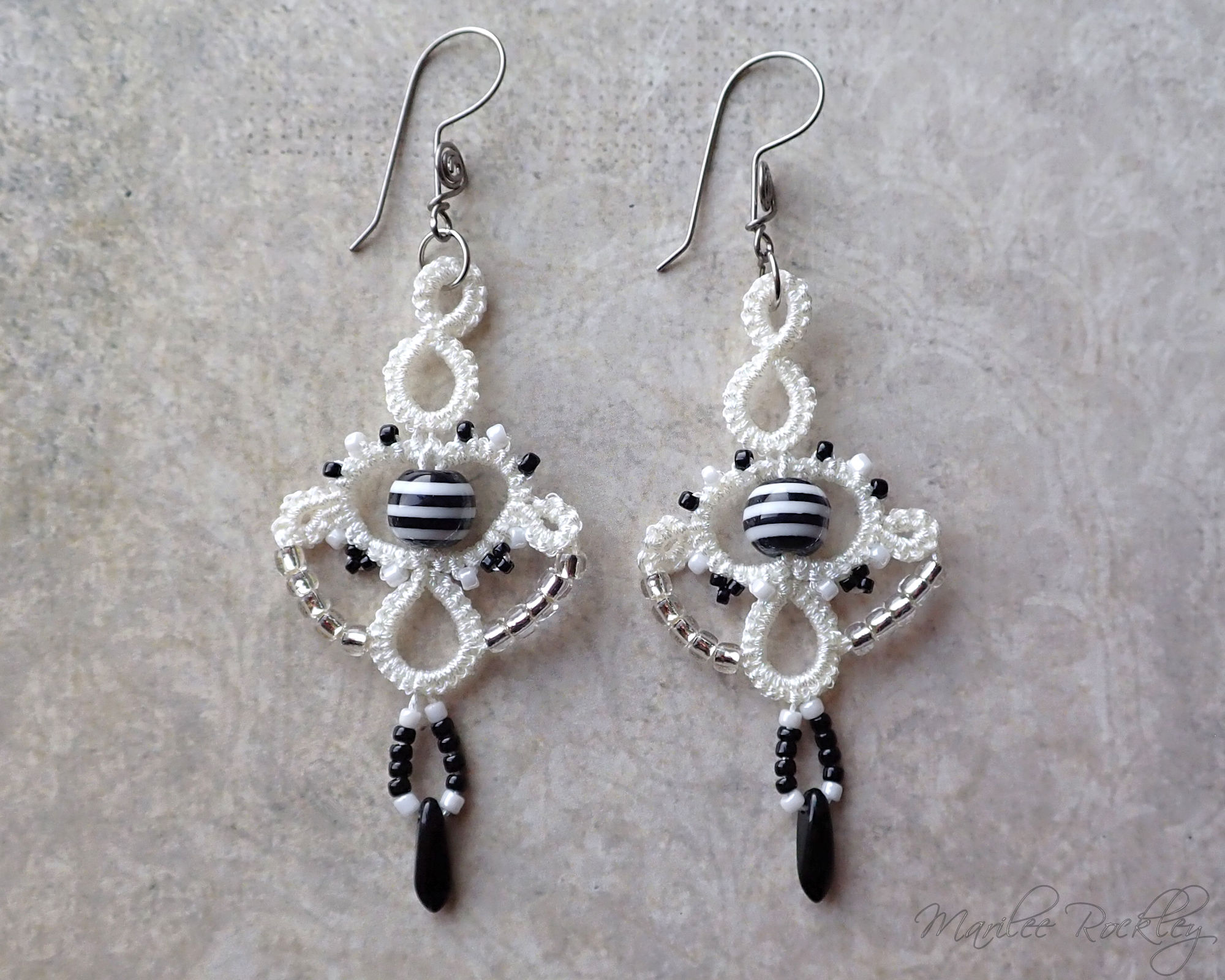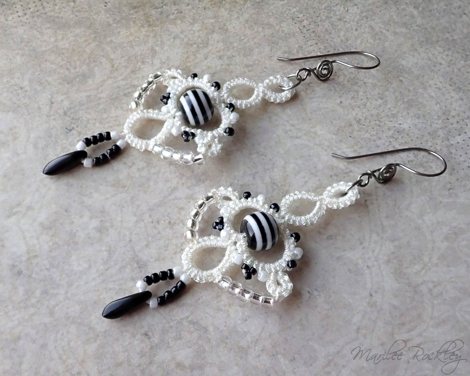 Tatted lace earrings handmade from my own "Elegance" design, with niobium earwires. It's one of the patterns from "Boutique Tatting".