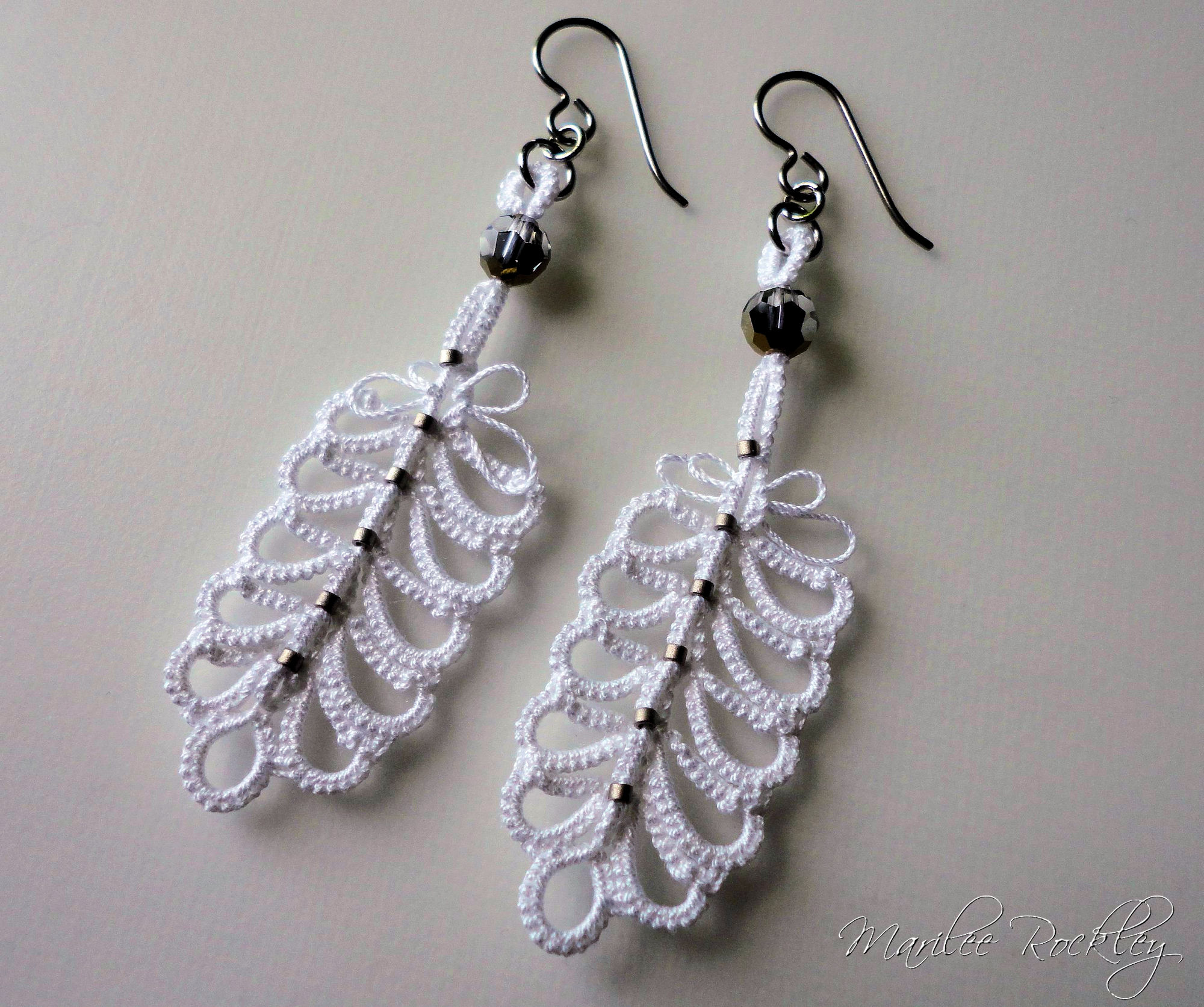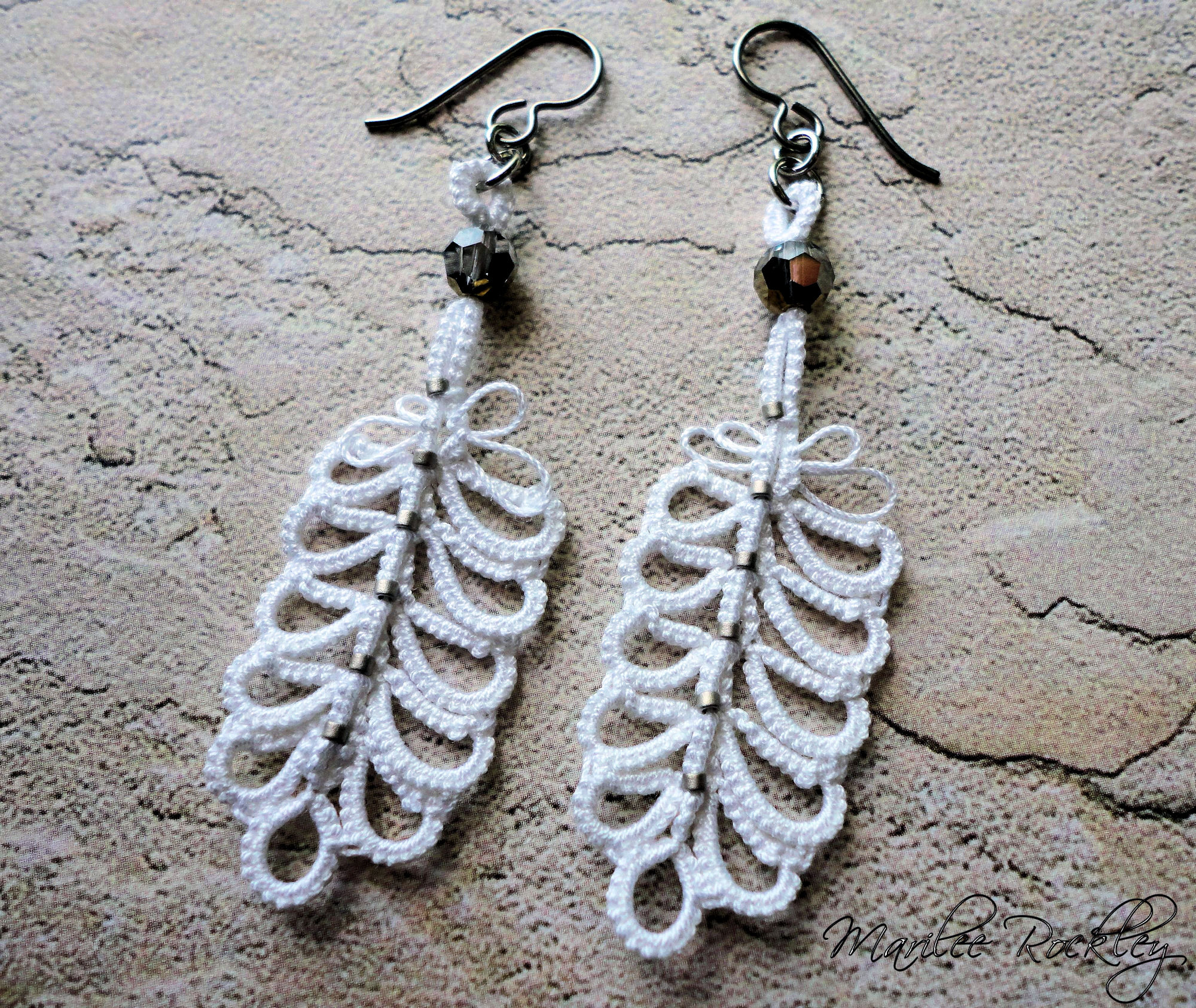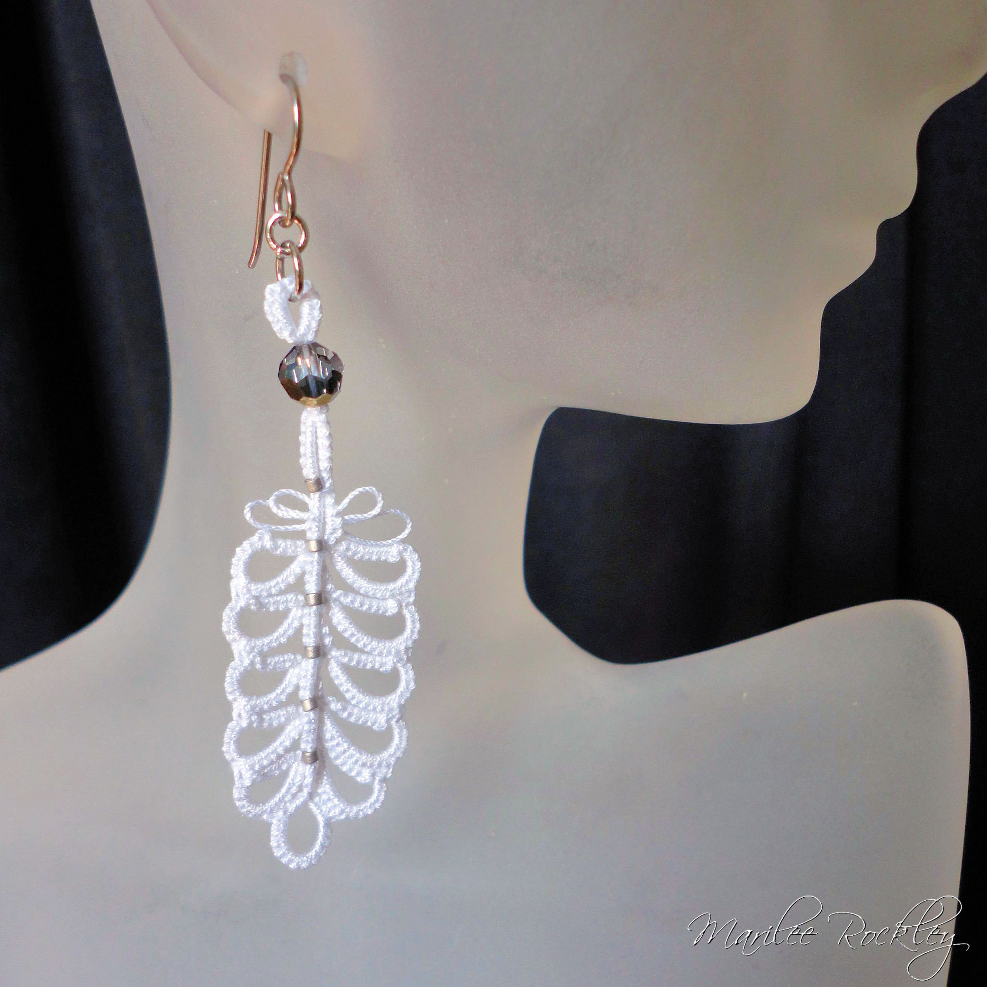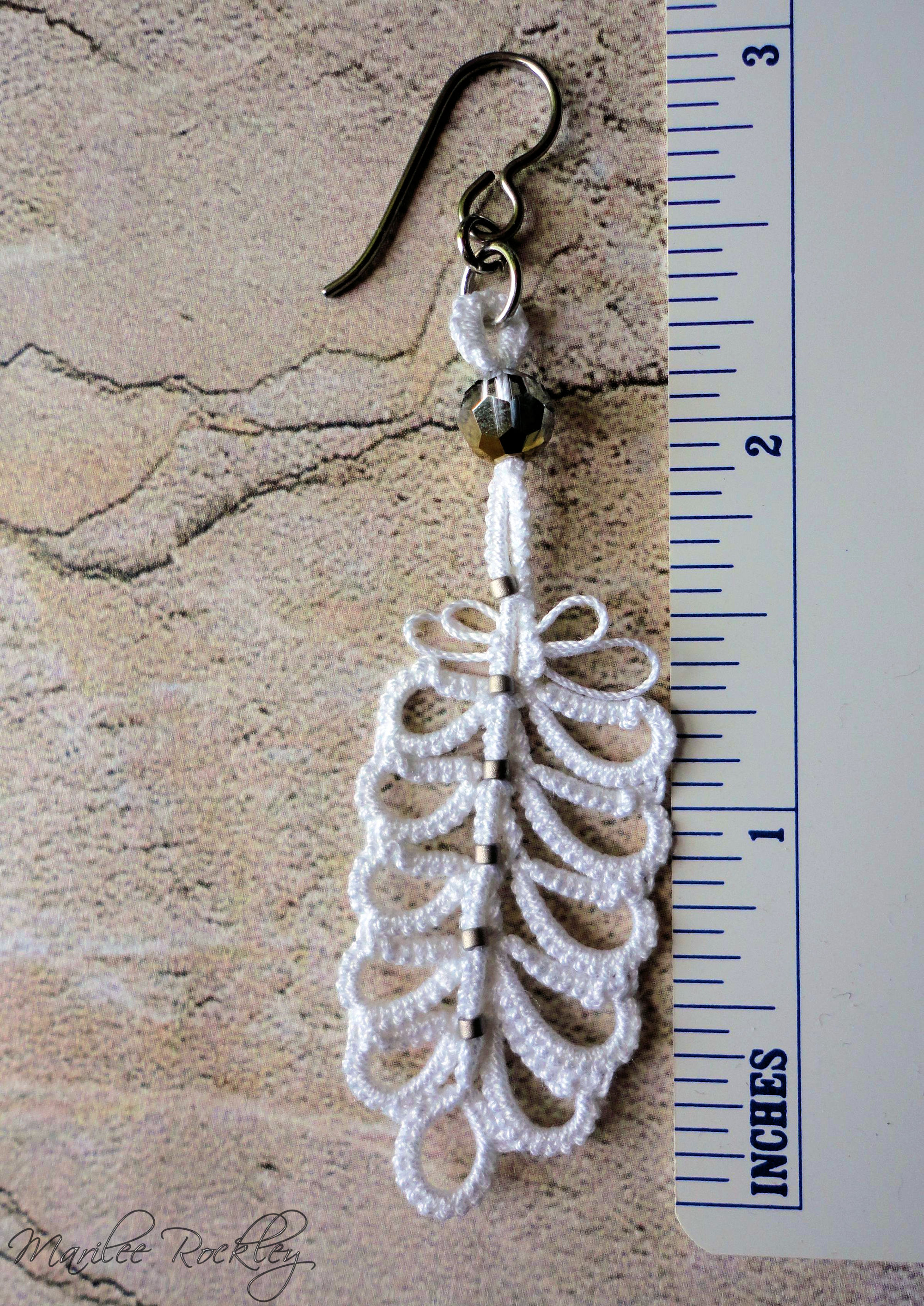 Tatted lace earrings handmade from my own feather design, with niobium earwires. It's one of the patterns from "Marilee's Beaded Tatting Finery".