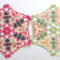 The design is a triangular motif made in 3 rounds, with tie and cut after each round. Joining the motifs together, along with the filler motif between each triangle can create larger projects.