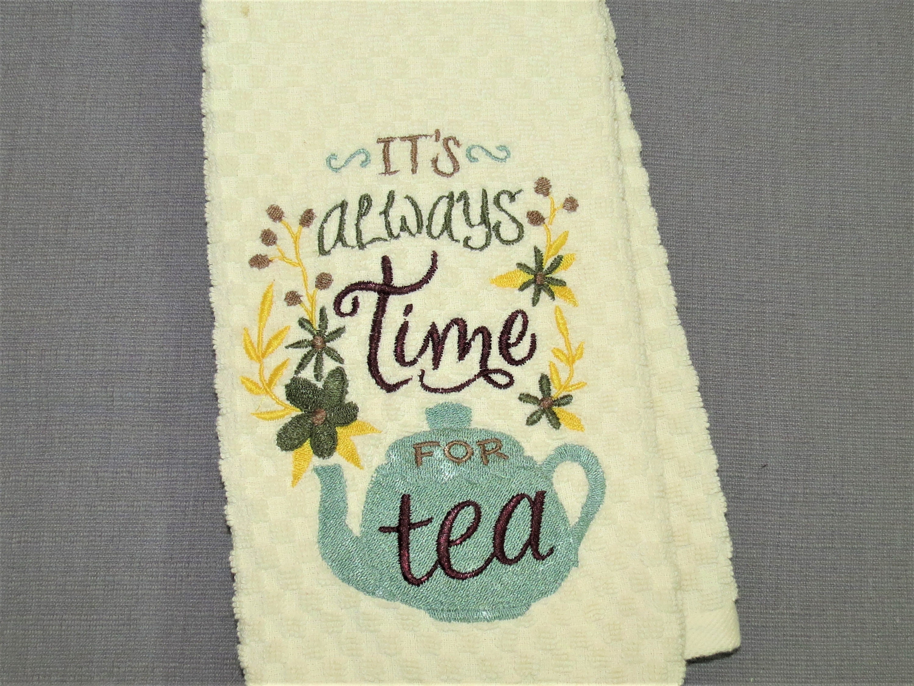 *Time for Tea: Is embroidered on a Ivory thick cotton towel