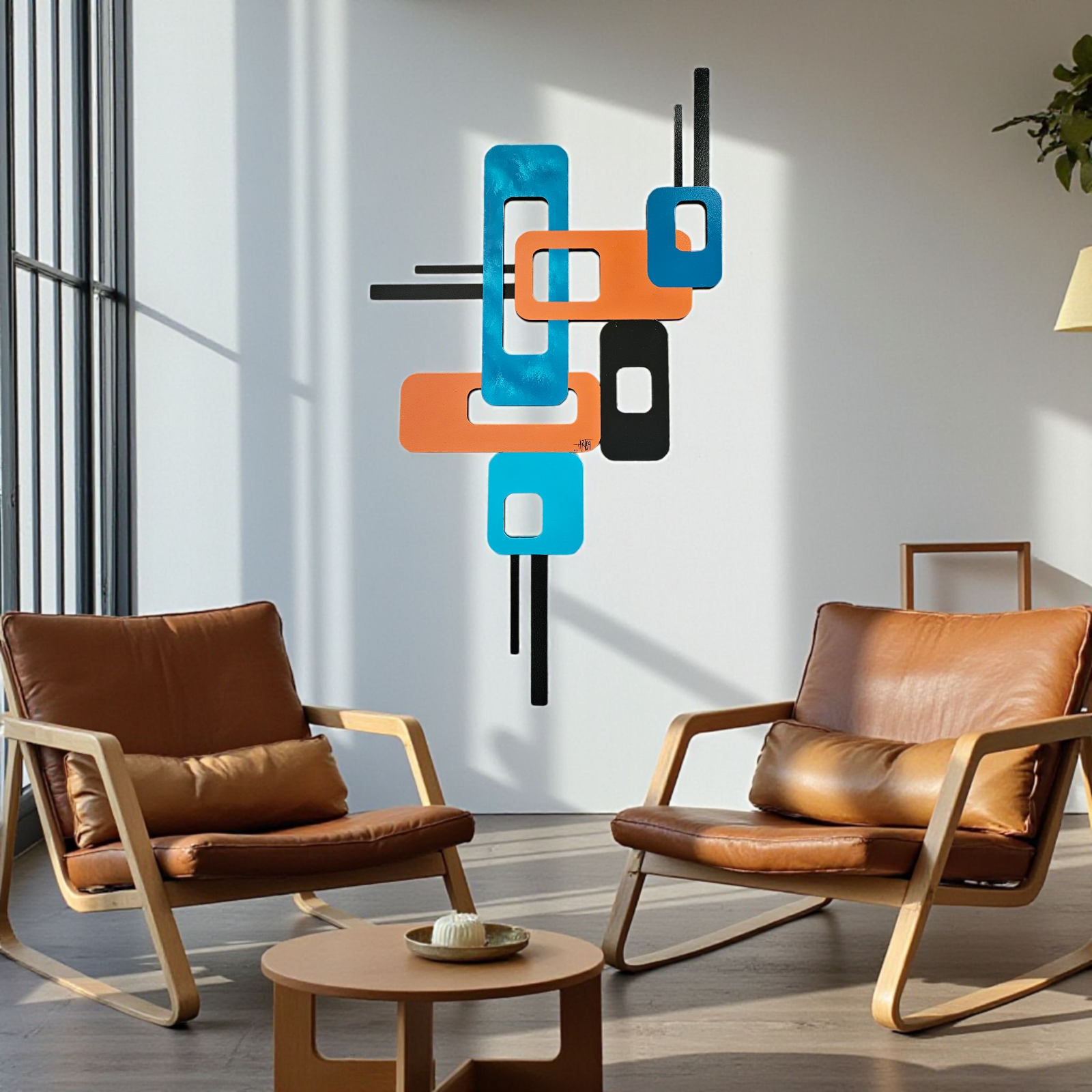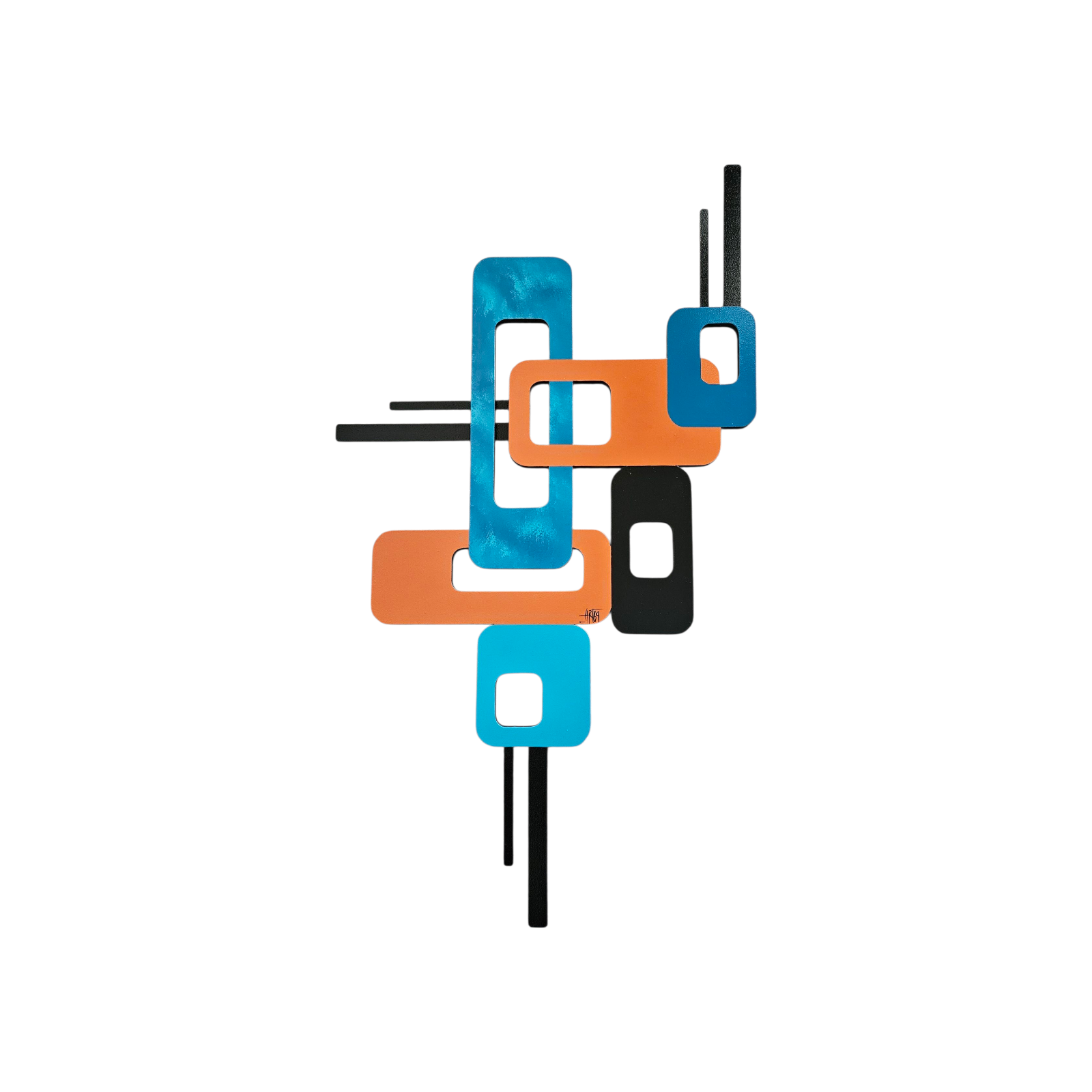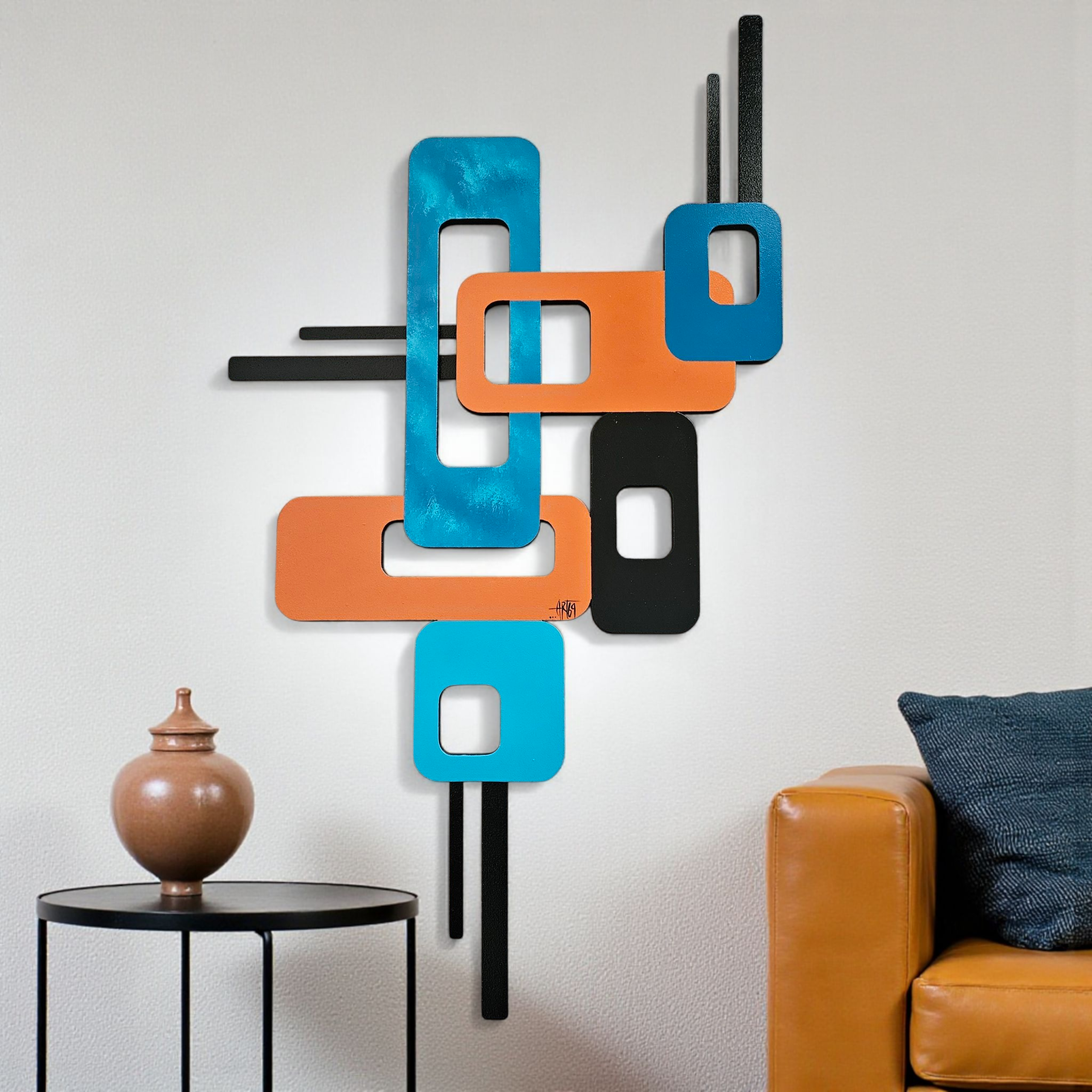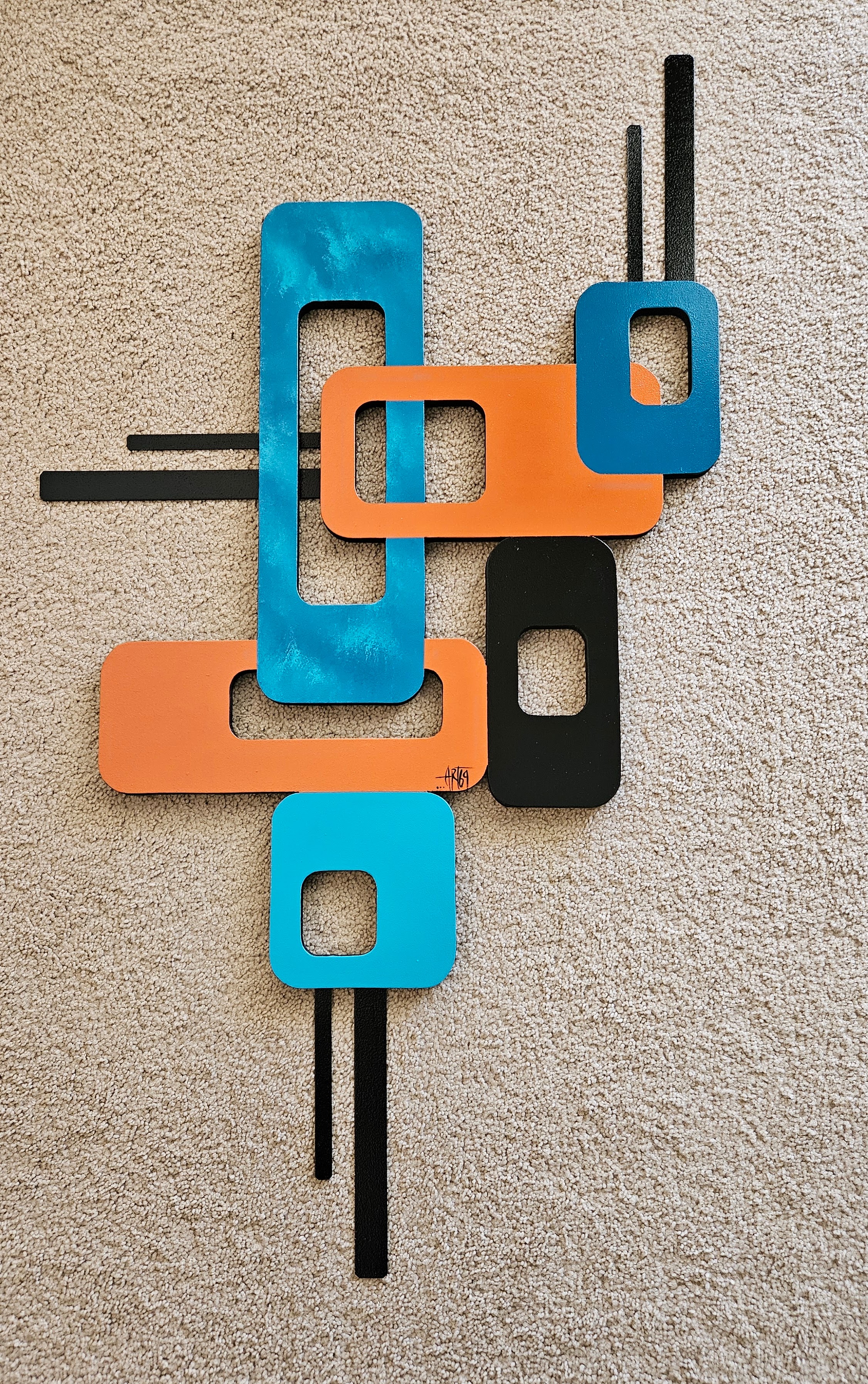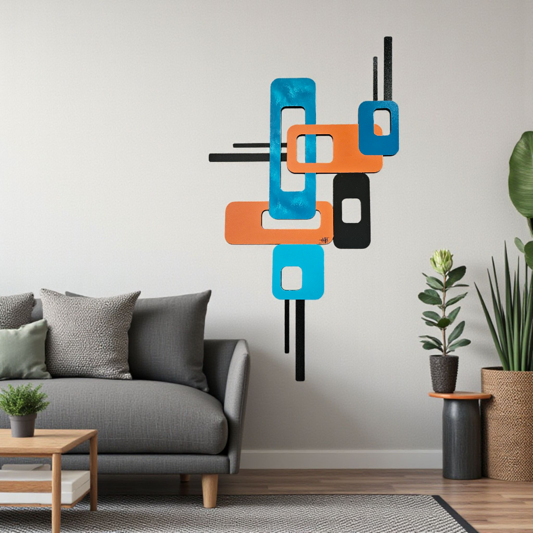 This lovely hand crafted, hand painted wall art by Alisa R Tarpley (Art69) is the perfect size to accent an area in your home or office. At 43" height by 24" width, it can add interest and color to brighten up any space. It's painted using quality acrylics on MDF wood and is finished with a high gloss lacquer for lots of shine and protection over the years. This Mid-Century Modern look wall hanging is a great addition to your contemporary decor and is quite versatile. It features black painted aluminum metal that is neatly attached to the back with screws which gives the art a unique touch and a little depth. Minor assembly is required upon arrival. It's super easy and this signed wall art is sure to elevate your space! Order yours today!