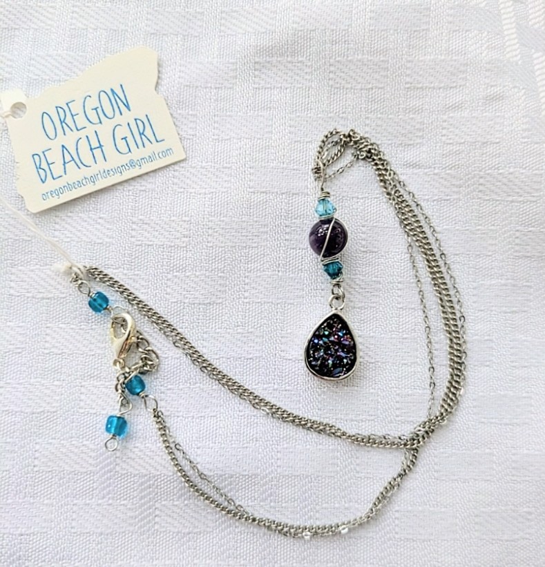 You'll be pure Elegance in this Teardrop Druzy Quartz choker from Oregon Beach Girl!