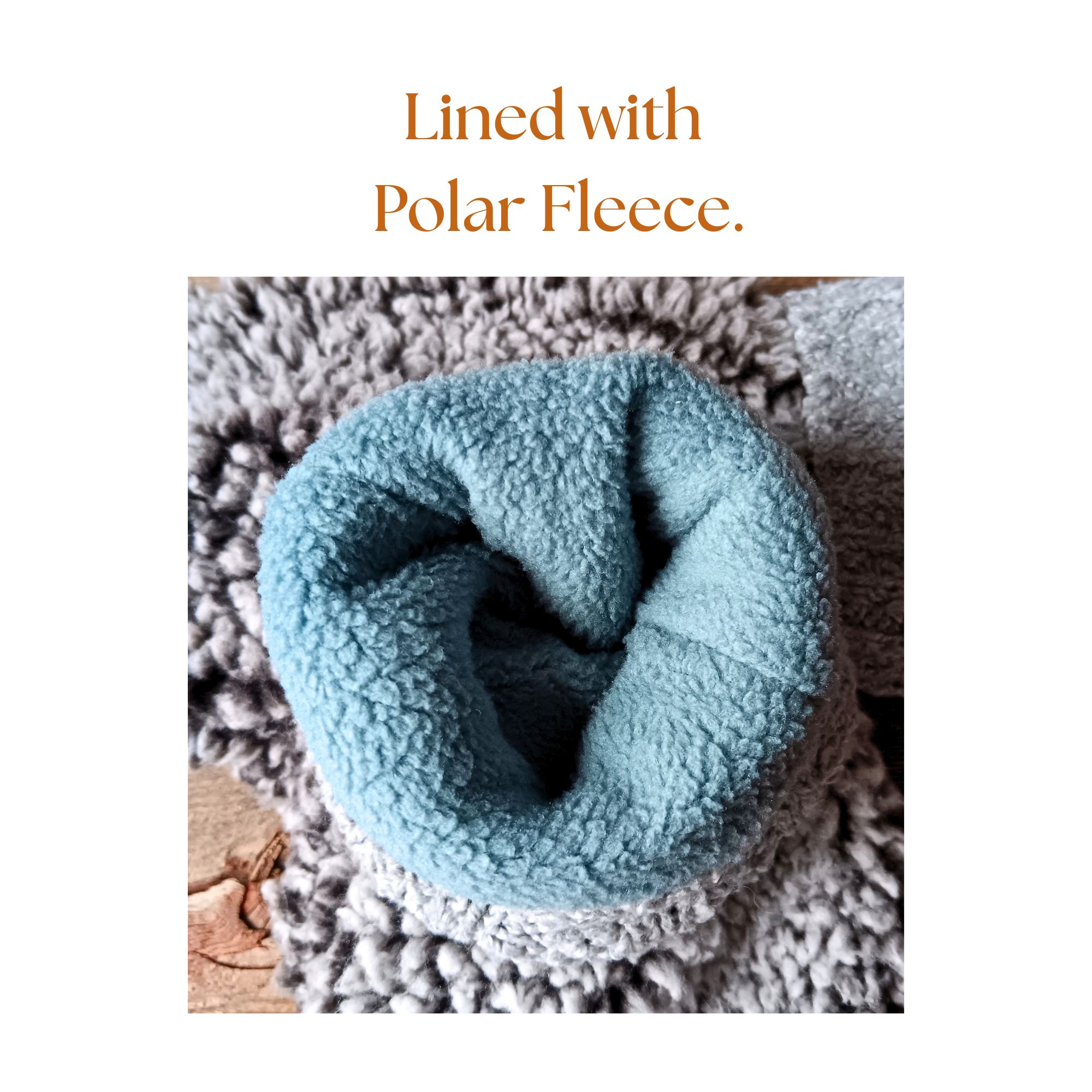 Each pair is crafted from upcycled fleece jackets and pullovers, carefully selected for quality and texture.