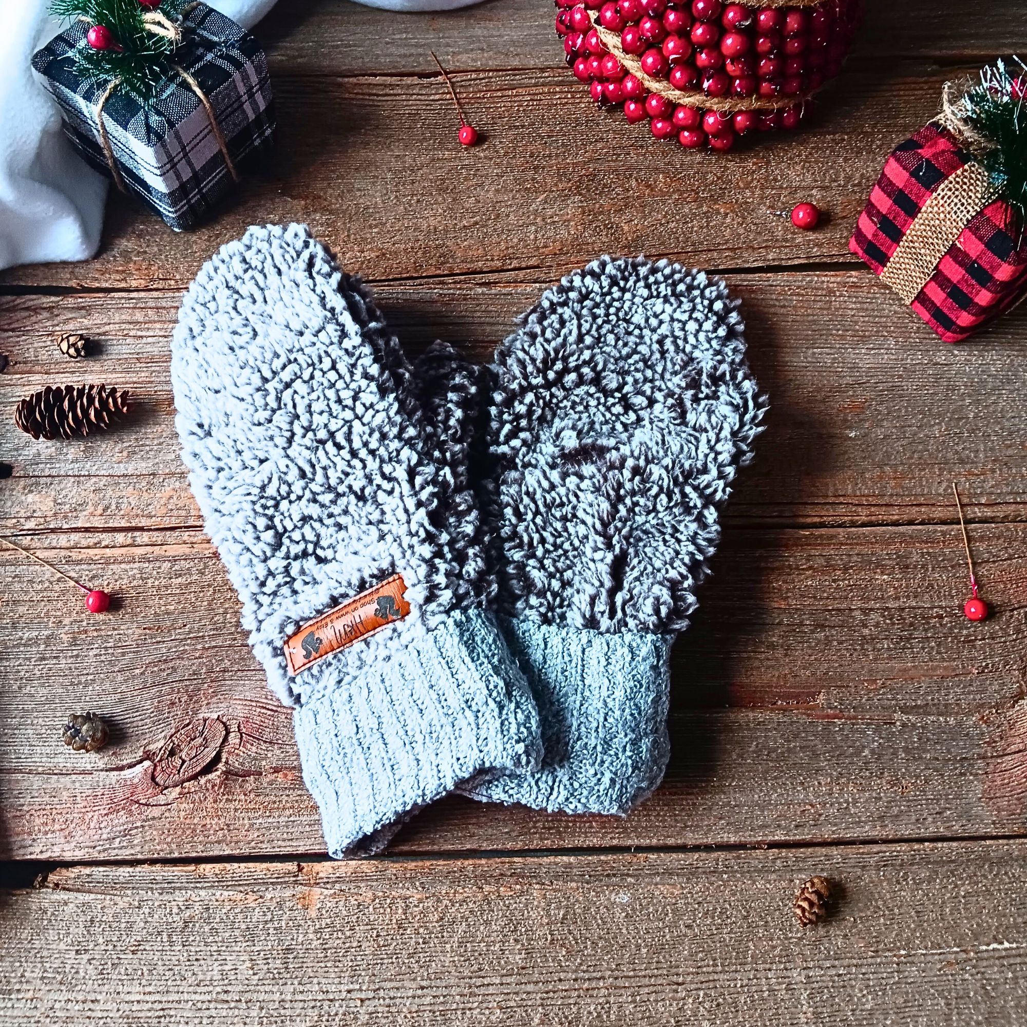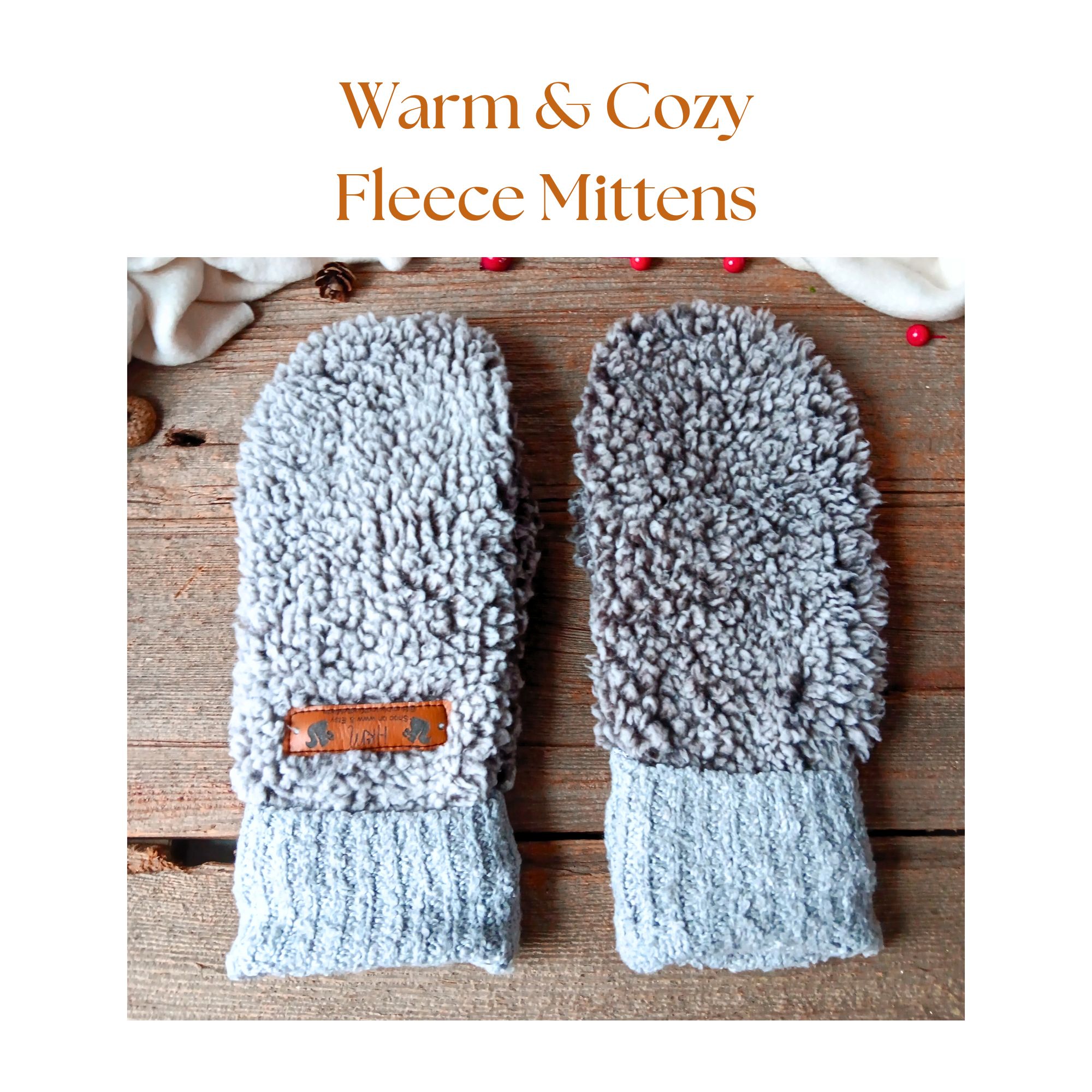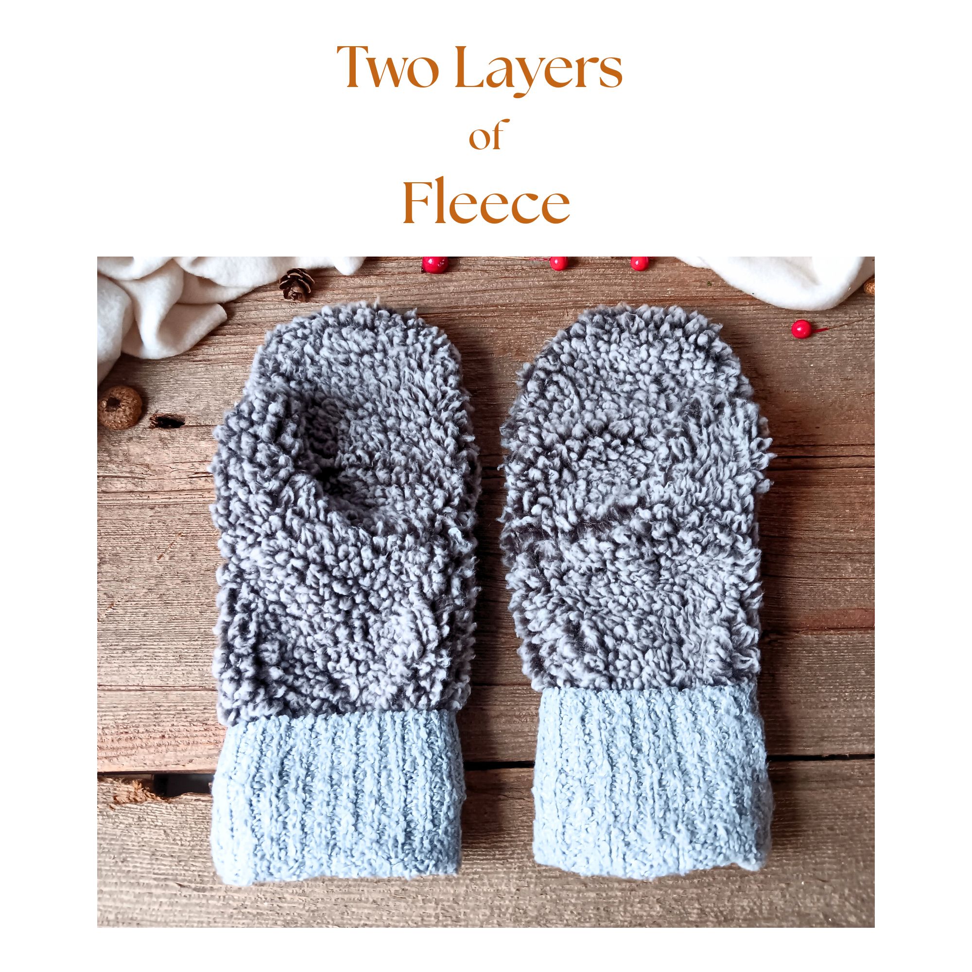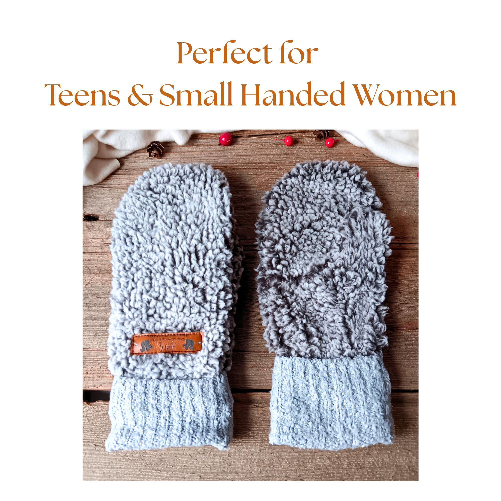 Teen, Small Woman Fleece Mittens | Handmade Fluffy Gray Double Layered Cozy Winter Gloves