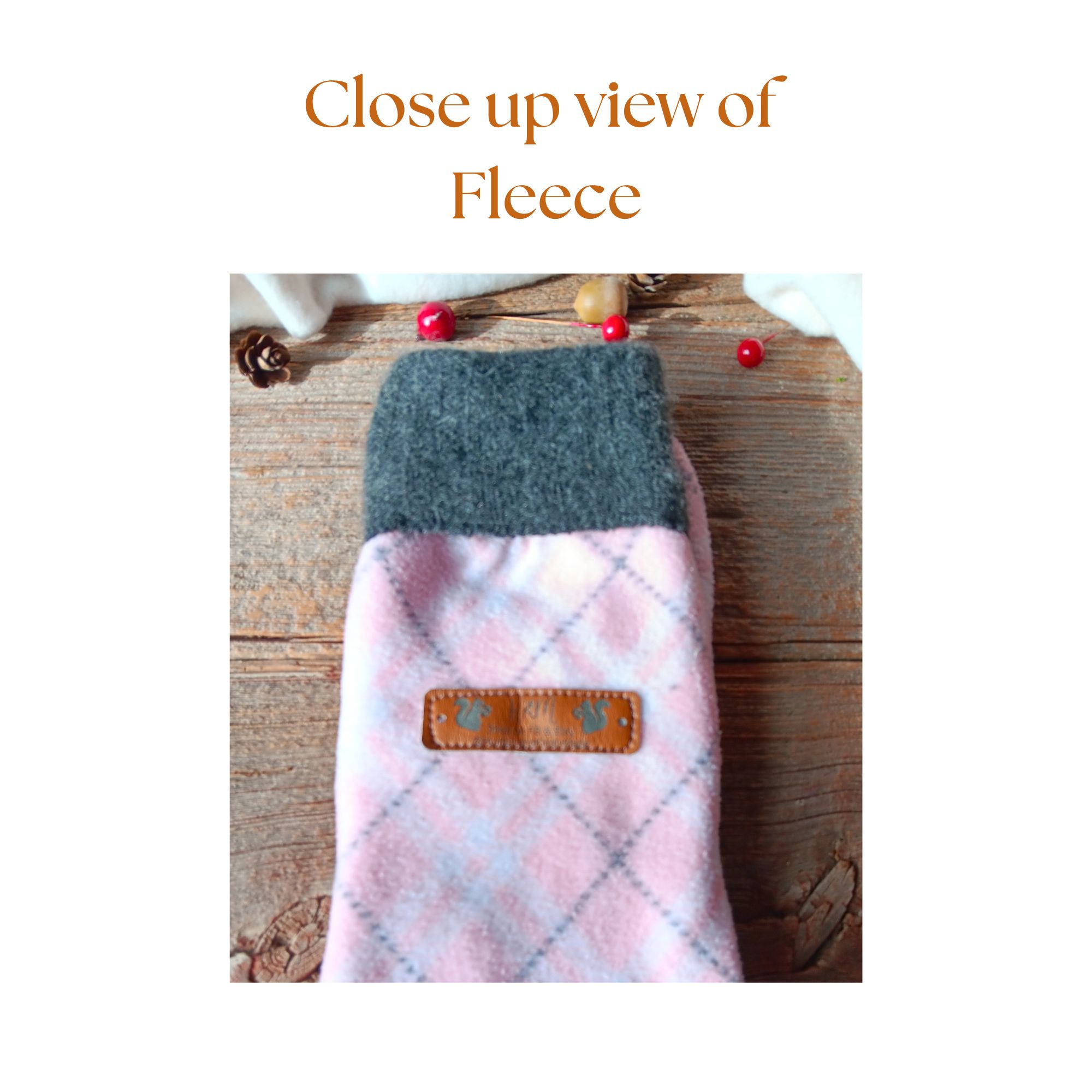 • Outer Shell: Upcycled fluffy pink fleece for durability and warmth.