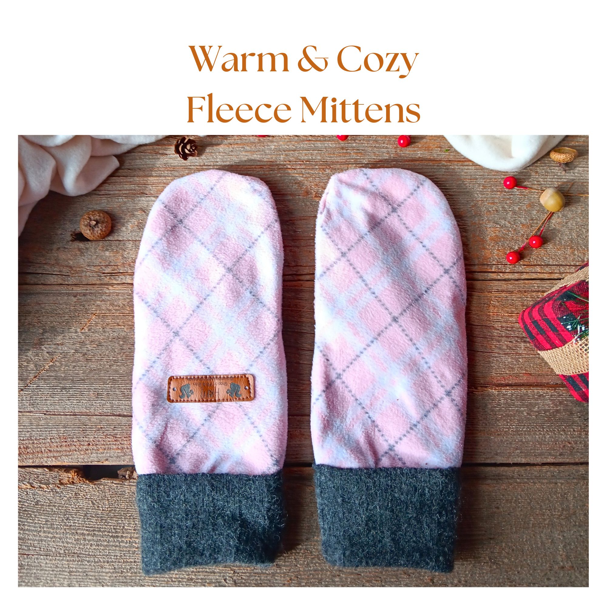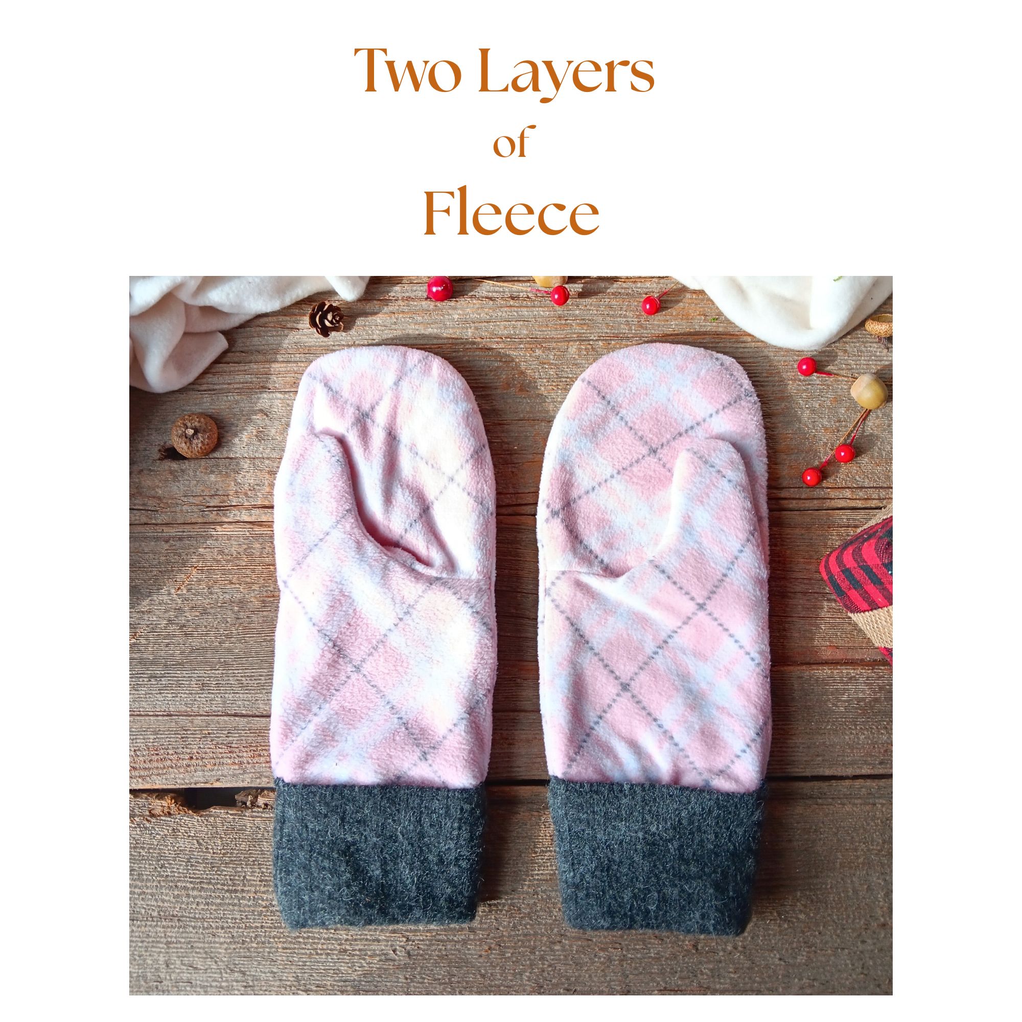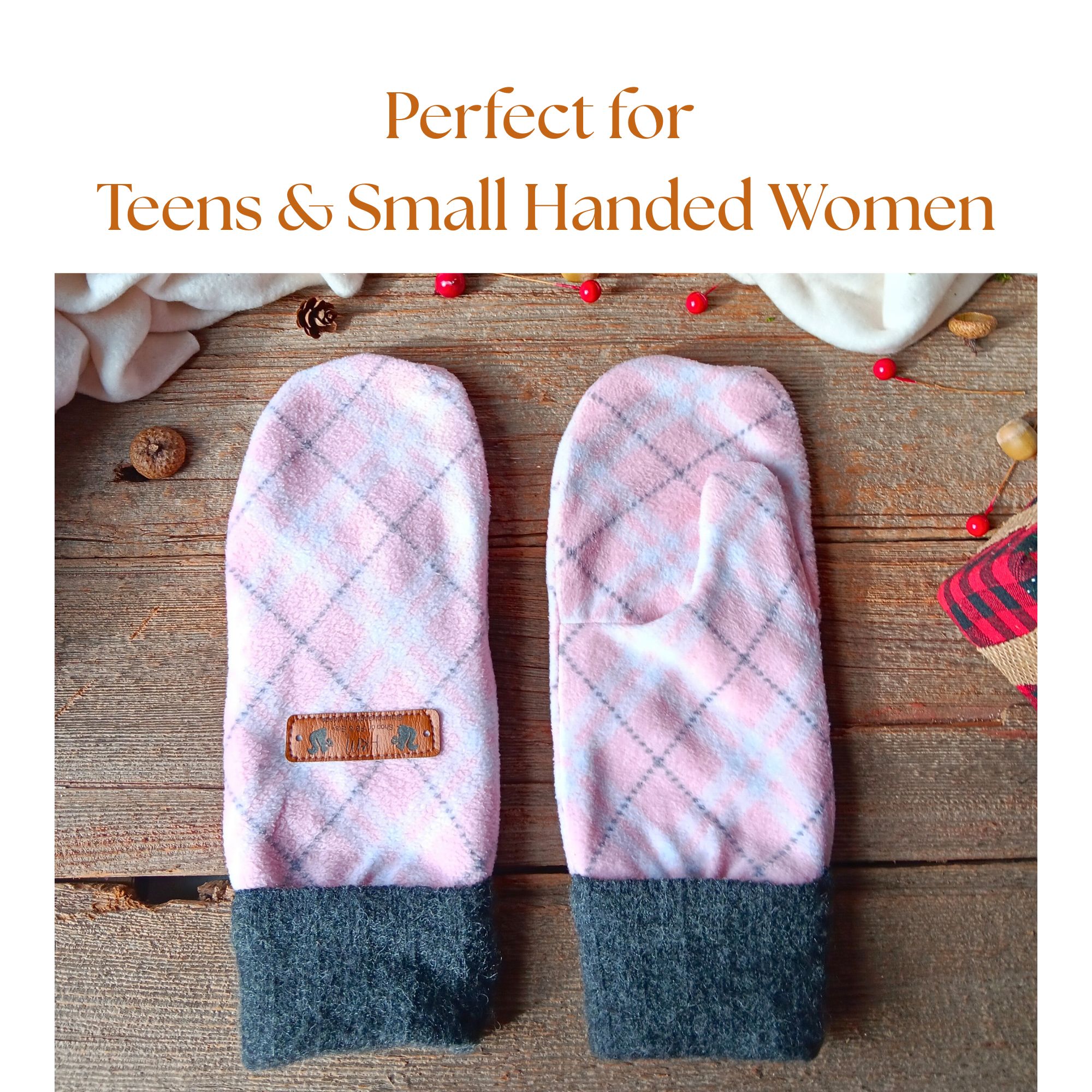 Teen, Small Woman Pink Fleece Mittens | Handmade Double Layered Cozy Winter Gloves