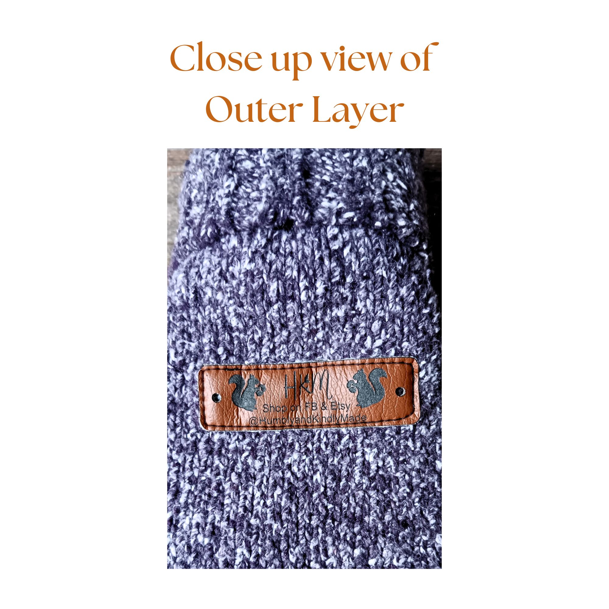 • Outer Shell: Upcycled fluffy sweater (60% acrylic, 40% cotton) for durability and warmth.